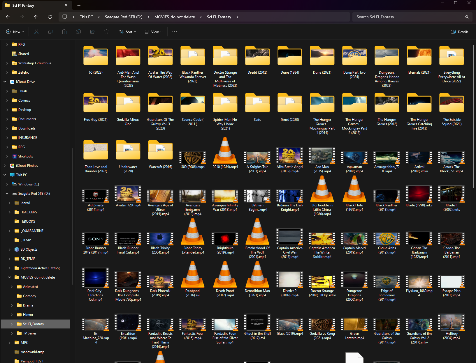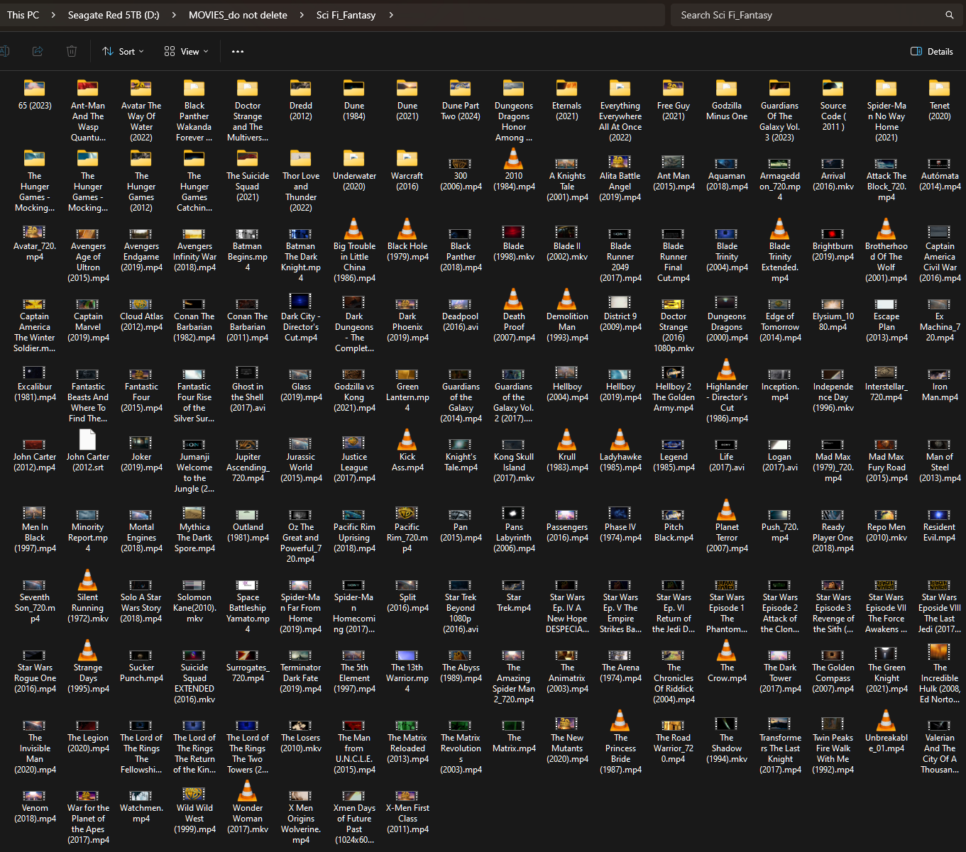 ImagoX 1 Posted June 1, 2024 Author Posted June 1, 2024 (edited) On 5/28/2024 at 6:40 PM, Happy2Play said: @ImagoX So something within the Sci-Fi folder is causing it to become a Show/Series and not a folder. Could be difficult to find but will problably need to see the content of that folder. As there are many topics of this happening in a nested folder structure environment especially with TV Content. Also what is then content type of this library? The contents are all movies, not TV shows. A screenshot of my 'SciFi / Fantasy' folder is below. All my other folders (Comedy, Drama, etc - you can see then on the left) share this same structure, and are displaying in the app correctly. NOTE: the folders at the top of the list are titles with subtitle files included - I read in a different forum tip to put them in folders like that for ease of use. Edited June 1, 2024 by ImagoX