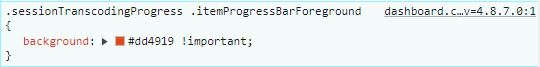 Happy2Play 9780 Posted May 31, 2024 Posted May 31, 2024 Minor change to element making override the existing !important. div.sessionTranscodingProgress .itemProgressBarForeground { background: #FFFF00 !important; } 1