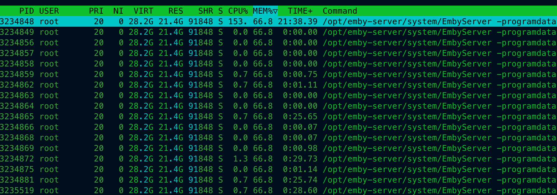 ggafewfa 0 Posted June 10, 2024 Author Posted June 10, 2024 "I have to keep restarting the Emby service to reduce memory usage, but soon the memory usage rises above 20GB again, so I continue to restart it."