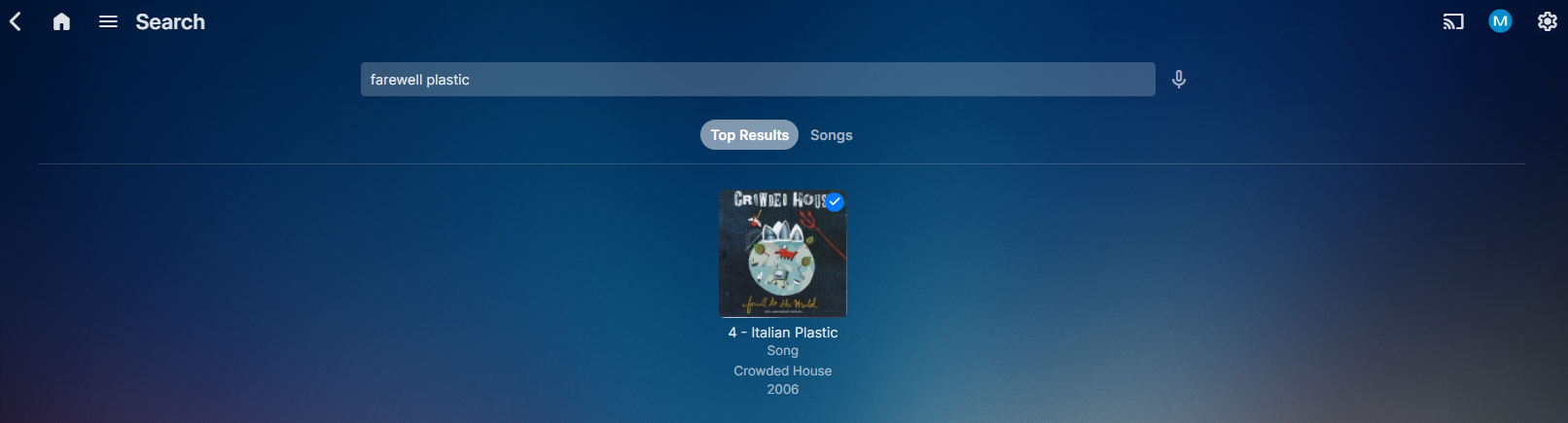 Happy2Play 9781 Posted June 22, 2024 Posted June 22, 2024 Further testing Does not look like Artist/song linking but album/song linking in partial search words. Plastic Farewell Plastic Artist/song will not provide results. So "cash hurt" or "hurt cash" would have to be something like "American Hurt" or any variation of Album name/song "American IV The Man Comes Around".