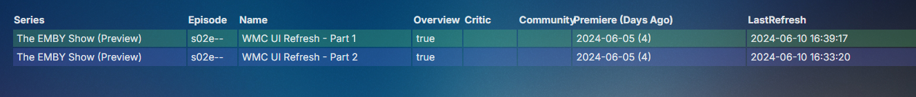 Happy2Play 9782 Posted June 10, 2024 Posted June 10, 2024 (edited) But a quick test of Episode Refresh I believe it reproduced the issue as it changed from extracted images to Series Thumb. As all three were like bottom image. But probably need to test with a provider series to see the if the issue is in the provider query. Edited June 10, 2024 by Happy2Play
