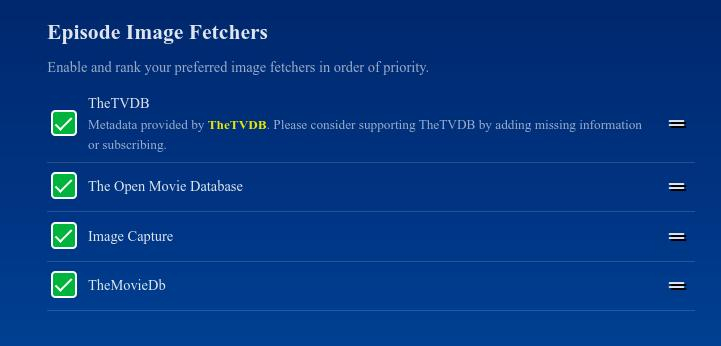 Normanos 13 Posted June 12, 2024 Author Posted June 12, 2024 7 hours ago, Luke said: @NormanosHi, what example are we focusing on here? Sorry, as usual, struggling to explain... in image, episode 15, 17, 18 have extracted image. For others it's using default thumb image. yes, had to enable Image Capture