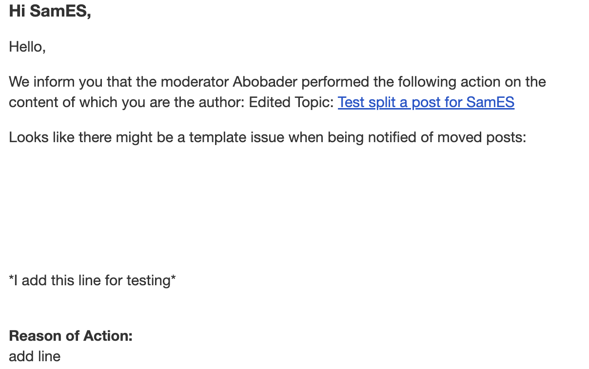 SamES 1056 Posted April 28, 2024 Posted April 28, 2024 (edited) Looks like there might be a template issue when being notified of moved posts: *I add this line for testing* Edited June 24, 2024 by Abobader add line