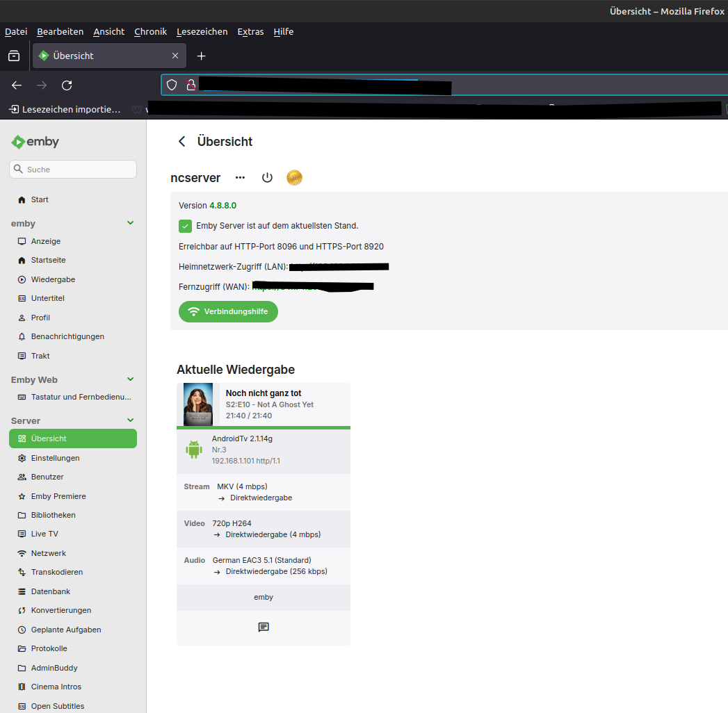 Doppellhelix 17 Posted July 4, 2024 Posted July 4, 2024 Hallo, ich nutze Emby auf einem Linux Ubuntuu Server. In den Servereinstellungen steht manchmal noch eine aktuelle Wiedergabe drin, die ist aber falsch. Es gibt aktuell keine Wiedergabe. Ich habe es mit verschiedenen Browser getestet. Jeder Browser zeigt mir die falsche akteulle Wiedergabe an. Es liegt daher wohl am Server. Starte ich den Embyserver neu, veschwindet diese Anzeige. Gruß Helix embyserver.txt