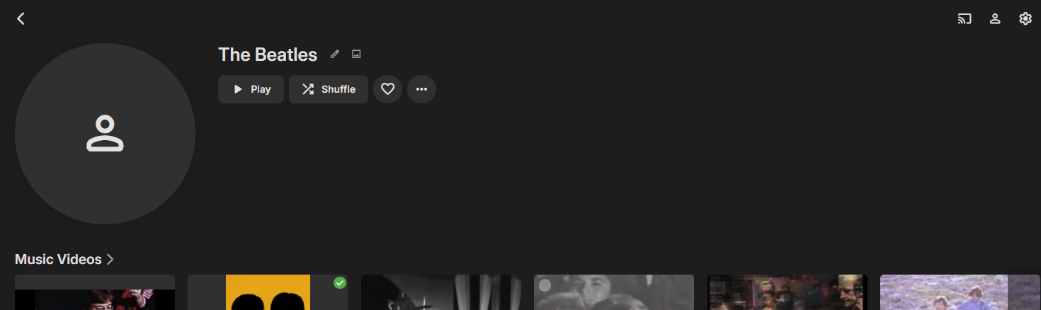 Luke 42080 Posted July 11, 2024 Posted July 11, 2024 On 7/5/2024 at 5:13 PM, CharleyVarrick said: Movies reference are now mostly purged (thank you). Now my 2nd main concern, why are artists "ignored". All my music videos have proper artist in MD, and if I click on any artist link, it brings me to a list of all MV by them. But I was expecting also an artist pic, a short bio, etc, instead they all look sad like this: I have tried Identify feature but it does not finds anything. Hi, have you tried refreshing the metadata on that artist?