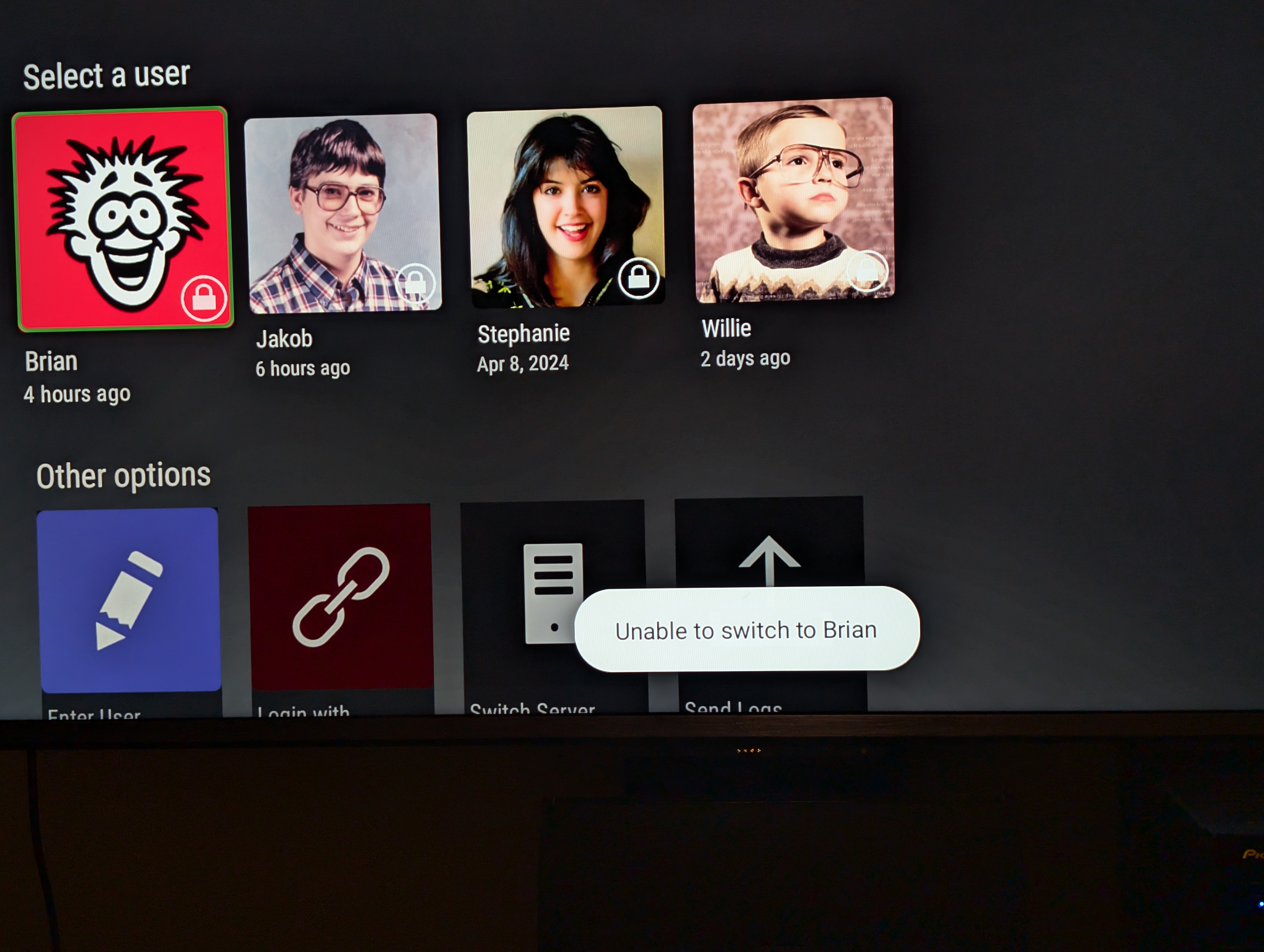 Ferkner 3 Posted July 6, 2024 Posted July 6, 2024 On my nvidia Shield TV, for some reason I suddenly cannot switch to any of the users as they all appear locked. However is I access Emby through my smart TV (also running Android TV) I don't have this problem. Nor if I use my phone. What's going on here and how do I fix it?
