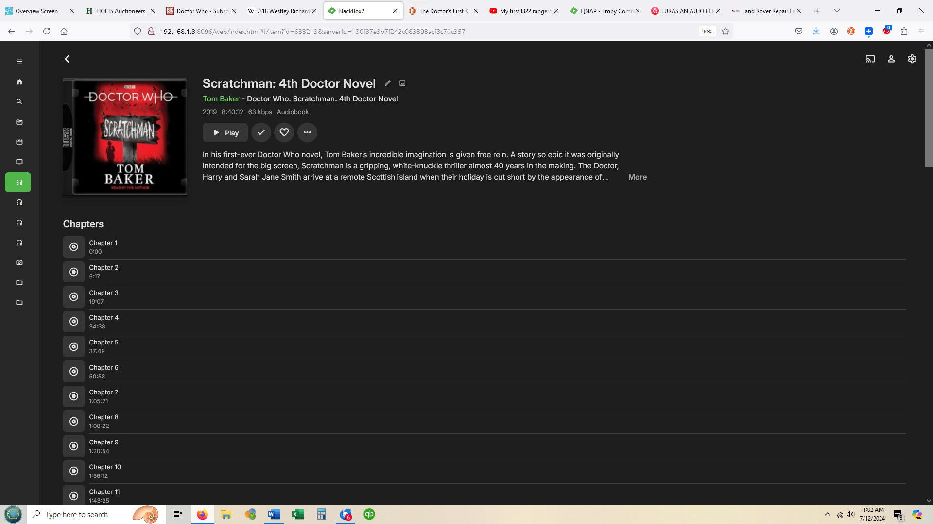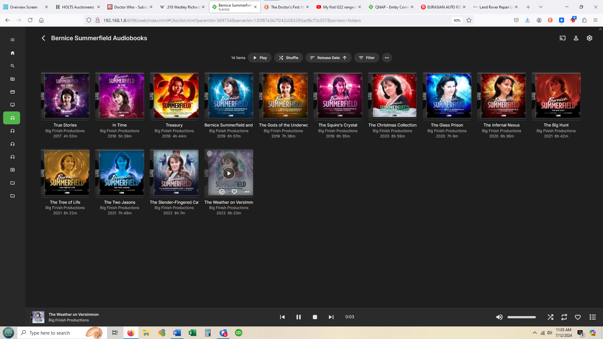 jprobins007 24 Posted July 23, 2024 Author Posted July 23, 2024 Starting from the Emby home screen, I choose an Audiobooks library named "Audio Drama". On the Audio Drama home screen in folder view, I choose the folder "Doctor Who". On the Doctor Who screen, I choose the subfolder "Bernice Summerfield Audiobooks". This pulls up the first screen above. Obviously, the process is identical on Samsung Tv and Chromecast (which is where I would usually be accessing Emby)..