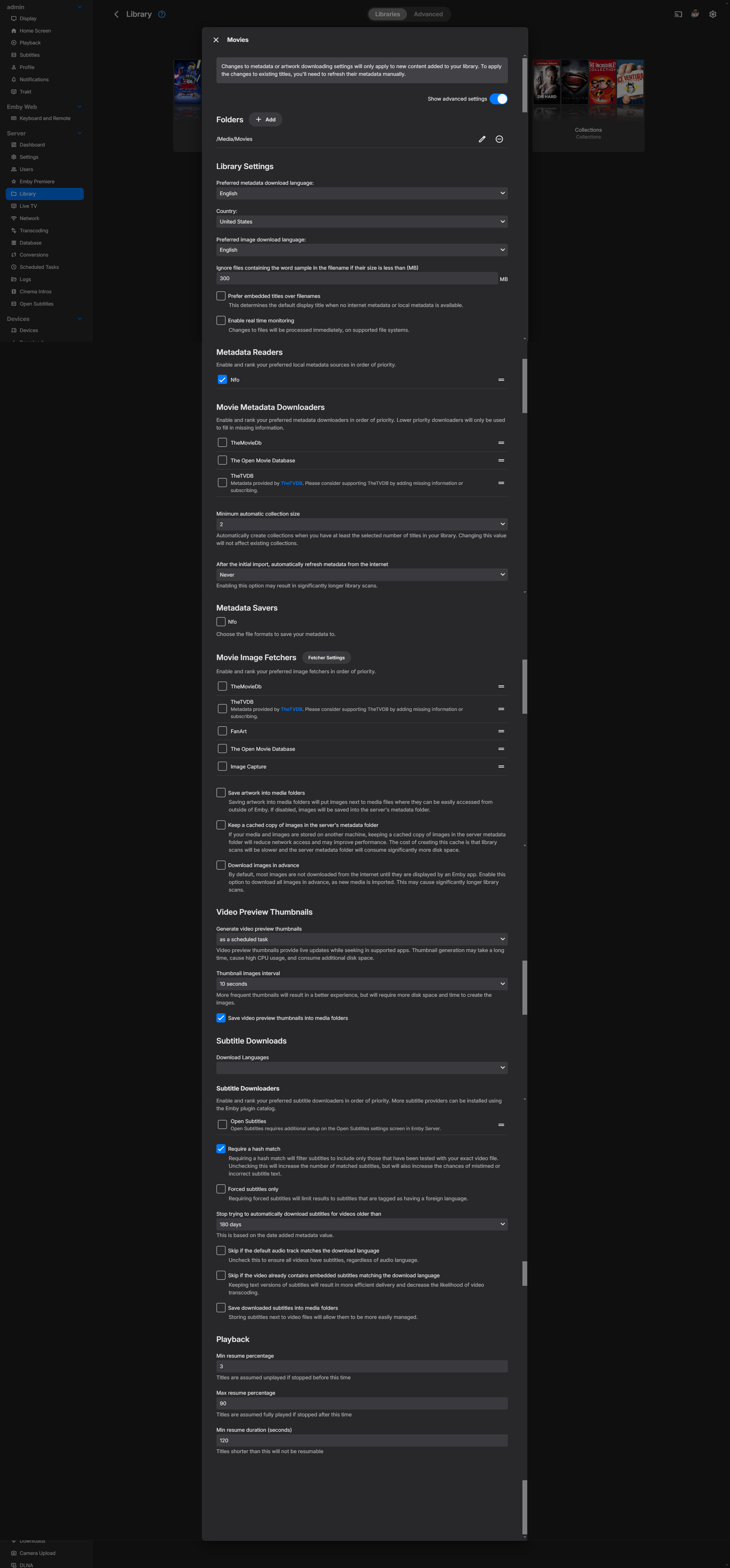 matrixtech 5 Posted July 13, 2024 Posted July 13, 2024 (edited) Hi, On my old windows emby when I clicked on an actor image that did not exist it would download immediately. I've migrated to Docker with a fresh install, and now I must manually refresh the metadata for the individual actor for the image to download. If I click on it nothing happens, If I refresh the Movie or Library nothing happens. I have access to my old windows emby and have duplicated almost all the settings, and still on the windows it downloads images and docker it does not. Nothing happens after I click. Once I manually refresh the actor shows up. embyserver.txt Edited July 13, 2024 by matrixtech delete image