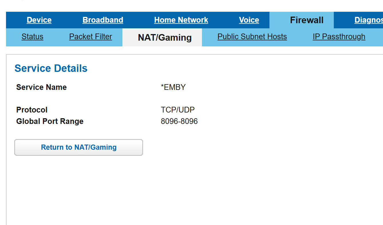 js28194 36 Posted August 2, 2024 Posted August 2, 2024 (edited) On 7/29/2024 at 3:31 PM, Q-Droid said: When you passthrough the BGW you want to disable everything else on that device. No filtering or forwarding or NAT settings. All disabled. Then only your second router is in play and needs the settings. Also bounce them both when you make changes like these. This is correct. You only use passthrough, based on the link I provided above. You input your ROUTER MAC address in the AT&T gateway. This allows the BGW to pass it's public IP to your router. Then you create your port forward rules in your router. I am not if its on purpose or oversight or just your naming convention you use, but UnPnP client seems odd wording but I digress. Also, try only 1 first. In your Synology Router, create a port forward rule inbound 8096 but TCP/UDP to your internal server. Get that working without SSL, then think about your next move to enable SSL. As already stated above, you are testing the incorrect port, you are testing port 80 and EMBY is/should be running on port 8096. Double check again. Edited August 2, 2024 by js28194