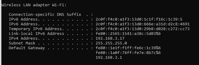 Lessaj 467 Posted August 1, 2024 Posted August 1, 2024 It seems that your devices are on different subnets, but that isn't necessarily an issue as long as the networks are routable to each other. Based on your posted ipconfig the server address has now changed to 192.168.3.89. The first thing you should do is set the server to have a static address. You can either do this on the device through the adapter properties, or you can try to access your default gateway 192.168.3.1 and look for a way to set a static address within the DHCP server settings which is what I would recommend doing. Once the server has a static address then you know that it at least won't change and you always know exactly what it is.