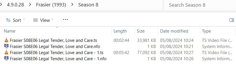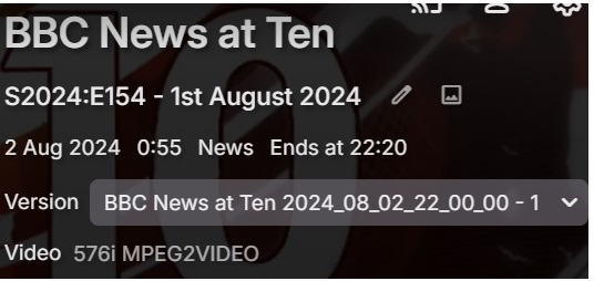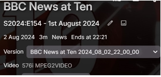 sa2000 674 Posted August 2, 2024 Posted August 2, 2024 (edited) 19 hours ago, Theradioguy said: In this example, I record for about 30 seconds, wait roughly 10 minutes, then record for another 30 seconds. The first recording is about a minute in length (in line with expectations), but the second recording is 8 minutes in length, and includes the entire duration from when the first recording was started. Update: I have just tested this out using a recent beta version - 4.9.0.27 I recorded the news selecting record (not record series) After 3 minutes I cancelled the recording Then I waited a couple of minutes and clicked on record again - for the same program After about a minute I cancelled the recording What I have in the library after is two versions of the episode - one being 3 minutes and one being 55 seconds - which is what you want. Have a look at the durations showing in the screenshots The 2 versions available in the drop down: Edited August 2, 2024 by sa2000
