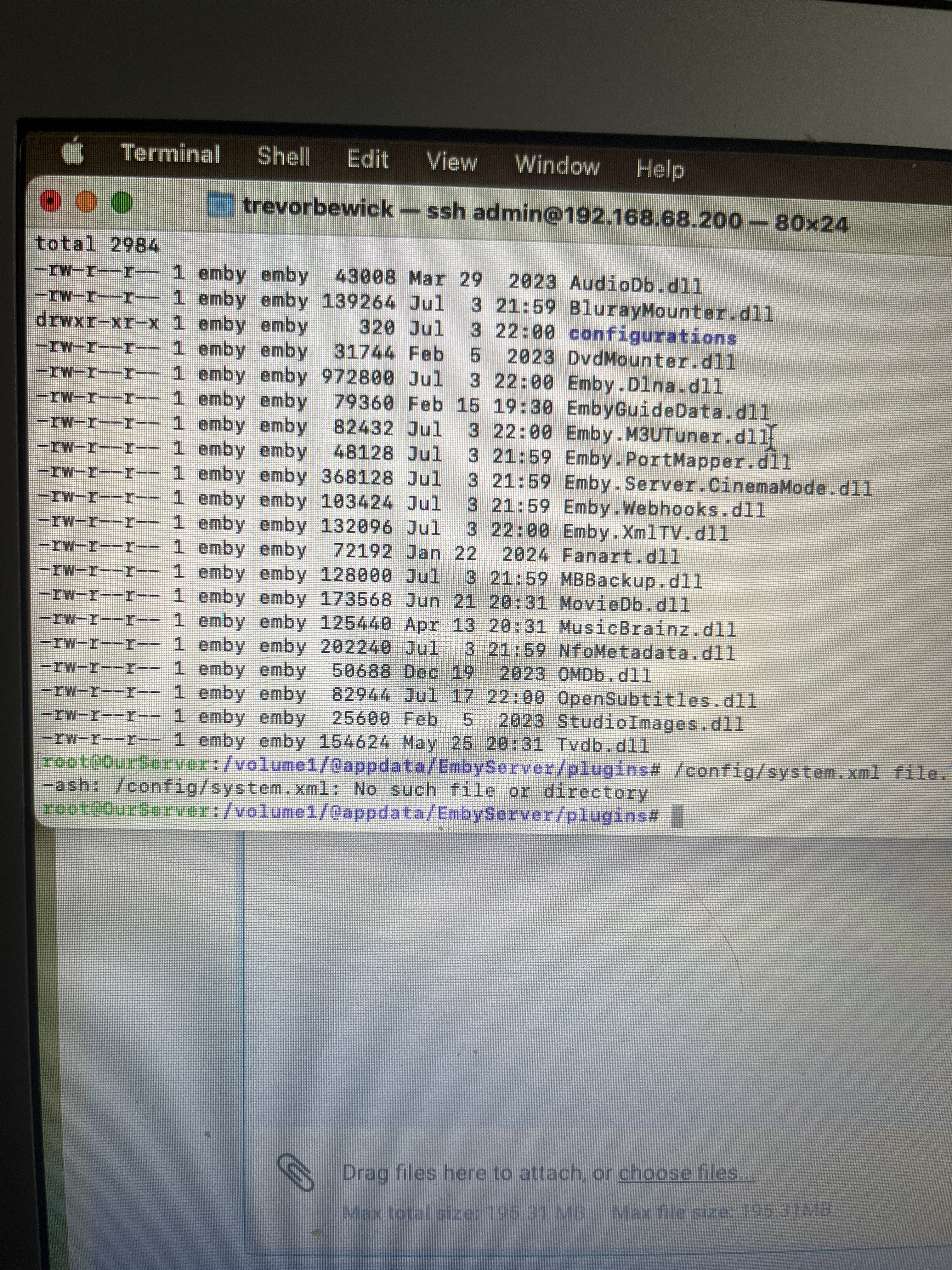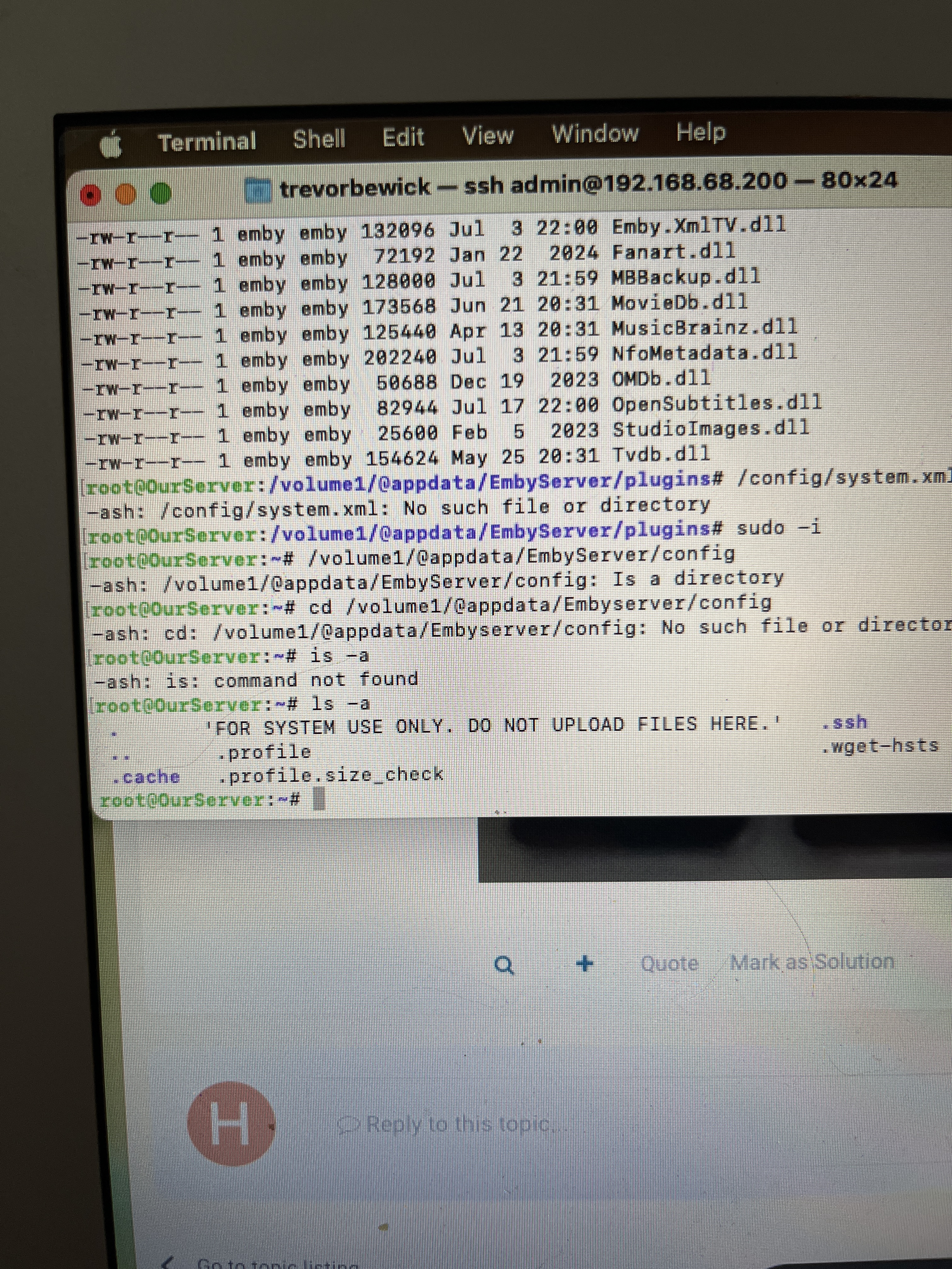 FrostByte 5392 Posted August 5, 2024 Posted August 5, 2024 Okay, I don't think you're in the correct folder though. I think you're still in the root folder. Also, folders are case sensitive and you had a small s in EmbyServer