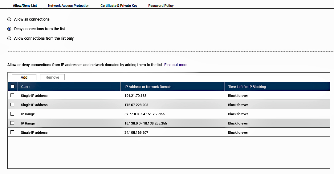 One2Go 120 Posted August 8, 2024 Posted August 8, 2024 On the NAS under the Security Entry there is a place for blocking connections. Would that be sufficient enough to enter IP addresses or ranges to block connections to the Emby server?