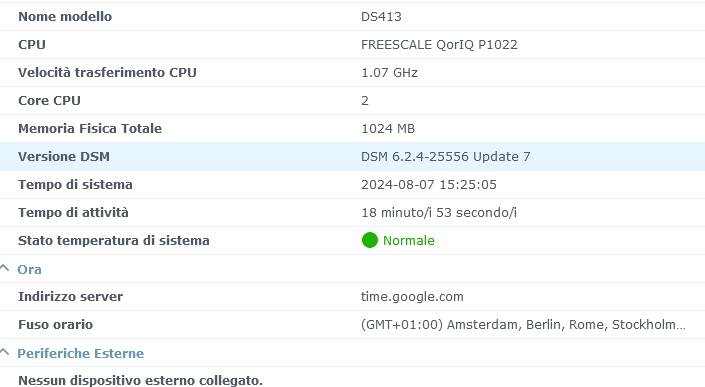 Trushemby 0 Posted August 7, 2024 Author Posted August 7, 2024 18 minutes ago, Trushemby said: Hy, I have Ds413 Synology ppc and Im tryng to install the emby-server-synology-mono_4.9.0.28_ppc, but seems the same occurs with emby-server-synology-mono_4.8.8.0_ppc). After the manual installation the server is stopped and if you launch the app nothing appens: the icon on the desktop vanishes, the sever is stopped; if you launch again the icon on the desktop reappers but the server is stopped the web instance (firefox) says it's impossible to connect (but I think it's natural cause the server is not active). I already rebooted the ds413 and reinstalled on top the emby server nothing happens and the server is always stopped. The DSM Version is on the attached screenshot Thanks for ny help Opening the unique log I noticed something strange regarding the ip addresses: they are reported in the log as reverted: ie 2024-08-07 13:00:25.000 Info NetworkManager: GatewayAddresses: x.y.z.t The adress in my network system is t.z.y.x 2024-08-07 13:00:25.000 Info NetworkManager: UnicastAddresses: 107.1.168.192,fe80::211:32ff:fe1b:c6d5%2 embyserver - Copia.txt
