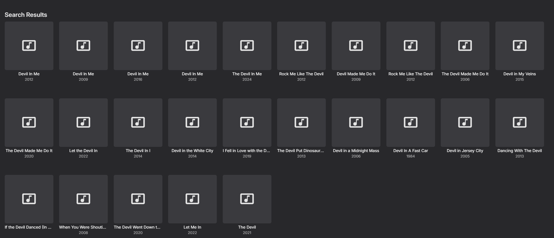 podonnell 47 Posted August 15, 2024 Author Posted August 15, 2024 (edited) After installing the plugin, this is still unfortunately very far from what I would consider manageable. 1) You are unable to specify the exact imvdb entry, like how you can with IMDb and MovieDB. 2) The results come back in such an unpresentable manner. No data whatsoever, no images, and you have no idea what you're really choosing outside of the year. (see below) 3) It's applying incorrect information. I submitted for Result #2 below for an item, and it came back with a movie called "The Devil's Tomb". 4) I was able to match one of my other files, but I'm not even sure of the purpose. All it did was update the thumbnail? It didn't even list the artist or any other information at all. Edited August 15, 2024 by podonnell