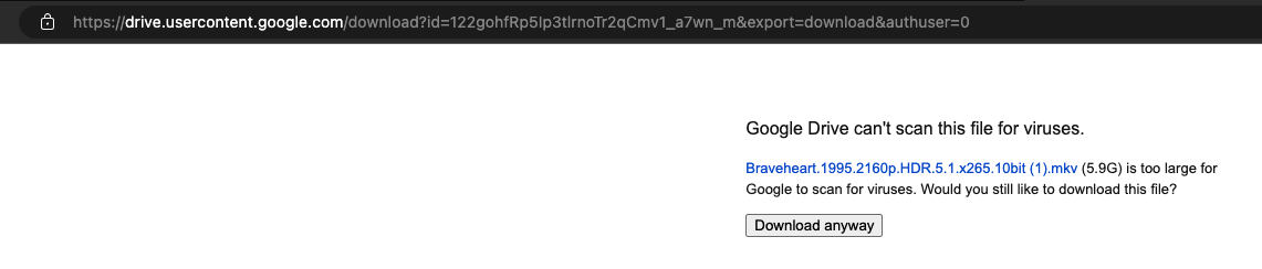 Ek_Korat 0 Posted August 15, 2024 Author Posted August 15, 2024 20 hours ago, Luke said: @Ek_Koratplease attach the corresponding emby server log as well. Also, look at the google drive url in the ffmpeg log. Does that resolve directly to the video file? that is important. It can't be a url to the google drive web page. Thanks. Hi @Luke, I've attached the emby server log and checking that the url in strm file is the same as the one in ffmpeg log, and when I opened that url it redirects to the page as I've attached the picture. embyserver-63859110631.txt