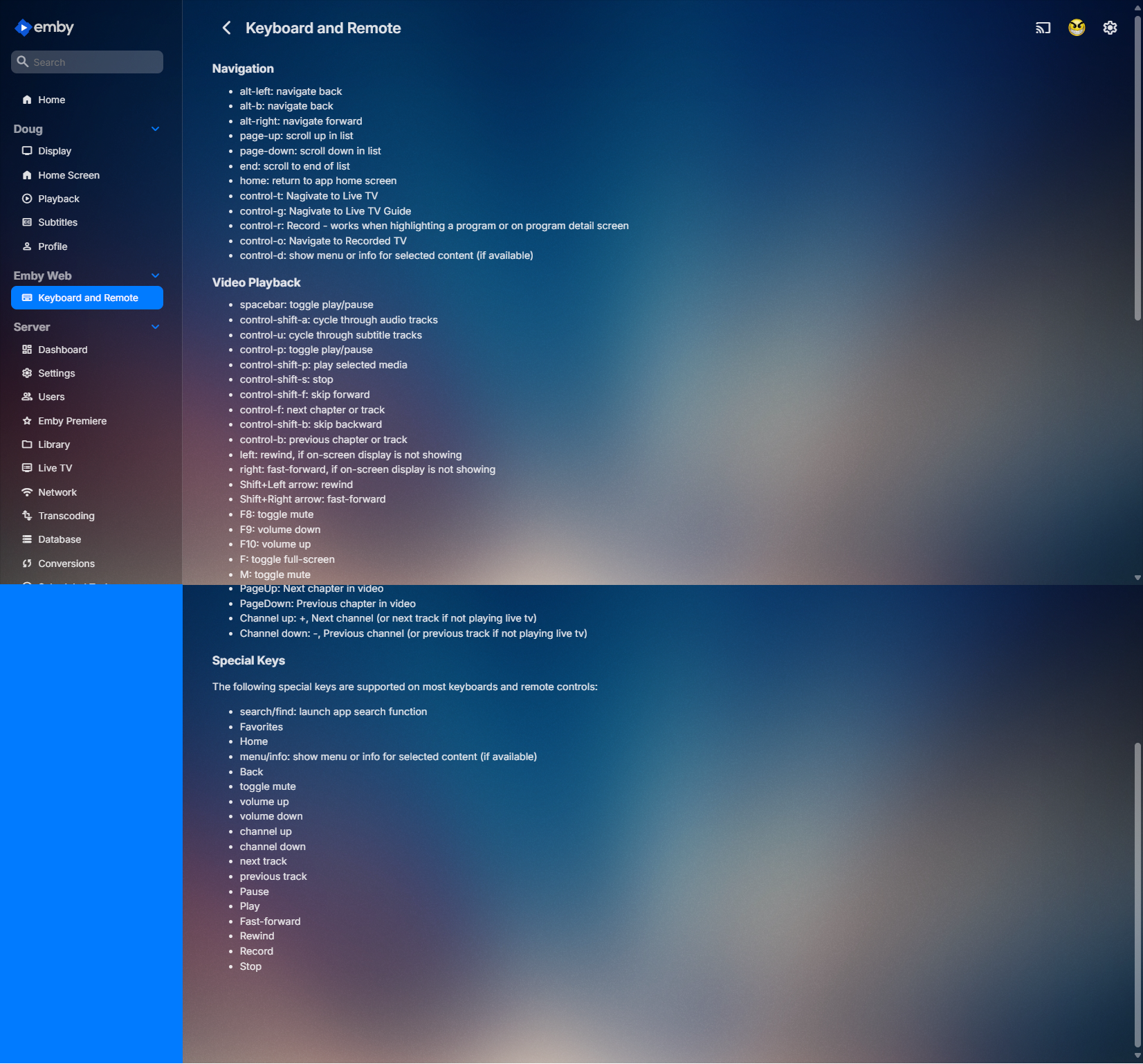 Luke 42079 Posted August 21, 2024 Posted August 21, 2024 22 minutes ago, podonnell said: Looks like this is only for Emby Web? I am trying to toggle subs on either LG App or Android App versions, my universal remote with a "Caption" button is not working in this way. Is there any other way to do this? Alternatively is there any way to hook into Emby with an API call or such that would allow me to execute different actions through something external? Yes and no. These special keys are active on most platforms, it's just that most remotes don't have these buttons.