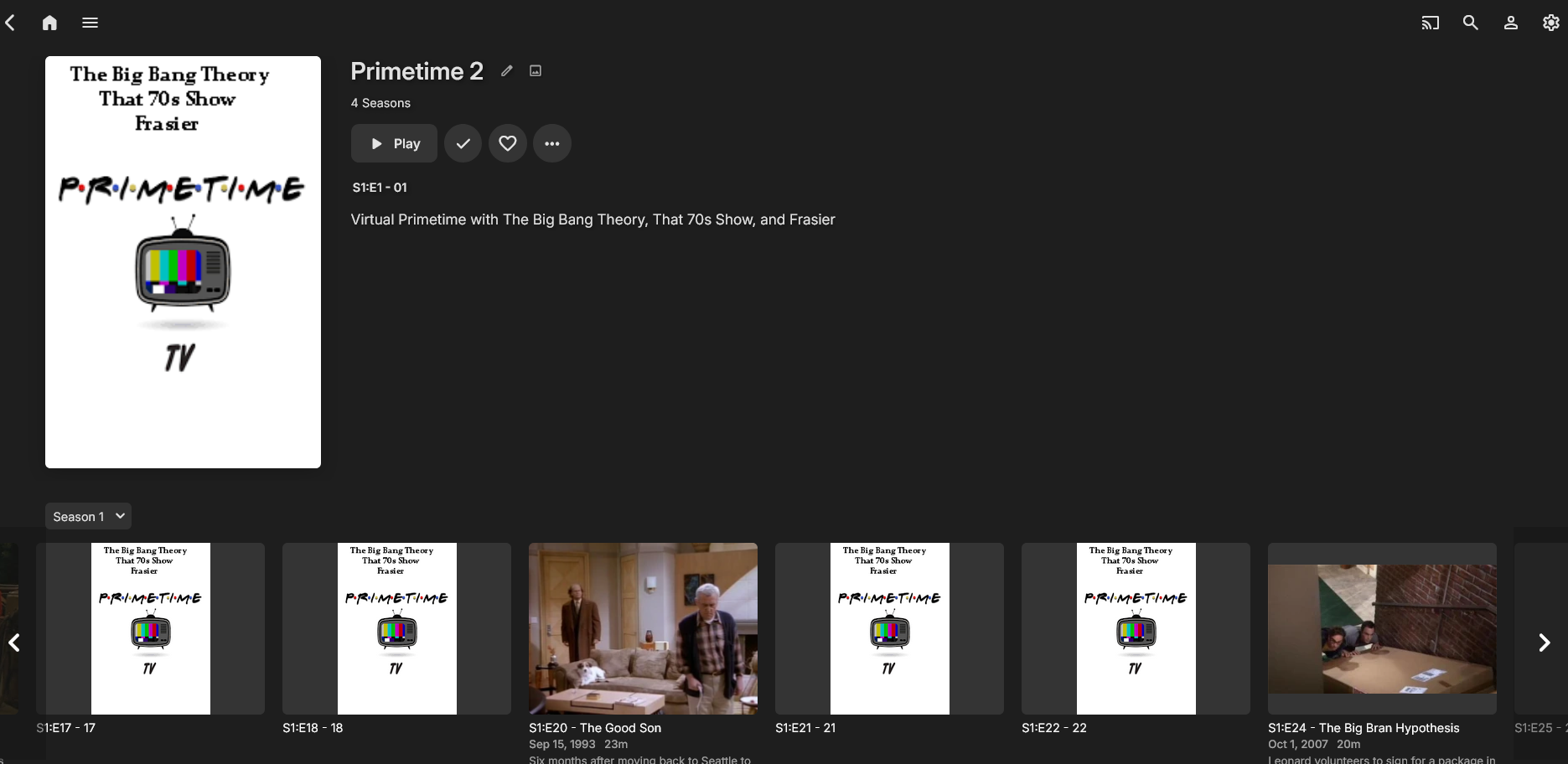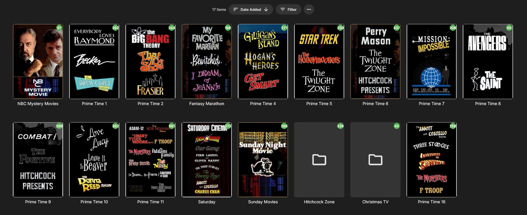 StuBailey 35 Posted August 17, 2024 Posted August 17, 2024 Virtual Prime time or whatever you want to call it. Make your own prime time lineup of your favorite shows. Built like a TV Series so it has Next Up: You can make a new library or add to an existing one You are going to edit NFOs and build a tv series. For starters, here's an example of 3 tv series each having 4 seasons that will play episode 1 from each series, then play episode 2 of each series, and on and on. Make a folder to do some nfo editing. Inside that folder work on one TV Series at a time. For this example it would be a good idea to make three folders, one for each series. Make as many season folders as you plan to use. Example: Show 1 Season 1 Season 2 Season 3 Season 4 Now download Notepad ++ if you don't have it. Enter the folder where you can see the 4 season folders (this example in Show 1 folder) now do at a search for .NFO files. Now drag all those NFOs into Notepad++ and don't panic - no matter how many seasons, if each season were to have 22 episodes for example, you will only need to make 22 edits. And using three TV Series you will do that 3 times. It's a breeze! I have a habit of working these backwards but I think it won't matter since the files are saved AFTER the edits. Use Search on the Menu and select Replace Find what: <episode>1</episode> Replace With: <episode>12</episode> I use the following numbers for make room for random commercials and station ID stuff. Works great on Roku and Android app. The Firestick was picky about missing episode numbers but there might be a way to change that. If not, use consecutive numbers. After all the edits make sure to go to the menu and SAVE ALL. Now go to Show #2 folder and do the same. And then Show #3. Show #1: Show #2 Show #3 1 = 12 1 = 16 1 = 20 2 = 24 2 = 28 2 = 32 3 = 36 3 = 40 3 = 44 4 = 48 4 = 52 4 = 56 5 = 60 5 = 64 5 = 68 . . . . . . 39 = 468 39 = 472 39 = 476 40 = 480 40 = 484 40 = 488 ------------------------------------ For the new combined series: Now make your real folder for emby and add the 4 season folders. Inside each season folder make a season folder for each series. Copy the edited NFOs from each series to the new matching series season folders. Season 1 The Big Bang Theory - season 1 That 70's Show - season 1 Frasier - season 1 Season 2 The Big Bang Theory - season 2 That 70's Show - season 2 Frasier - season 2 Season 3 The Big Bang Theory - season 3 That 70's Show - season 3 Frasier - season 3 Season 4 The Big Bang Theory - season 4 That 70's Show - season 4 Frasier - season 4 Now go to the original series files and copy the .jpg and .bif (if you plan to use symlinks) to the matching TV Series and season folders. Make the symlinks or strm files and add to matching series and season folders. All done! Go to the menu and Save All. --------------------------------------------------- If you refresh you can lose it all.... just save the edited NFOs and add them back. Can even make a new Library and turn off metadata fetching or just set metadata to BLOCKING. You can share NFOs but will be subject to the order written.