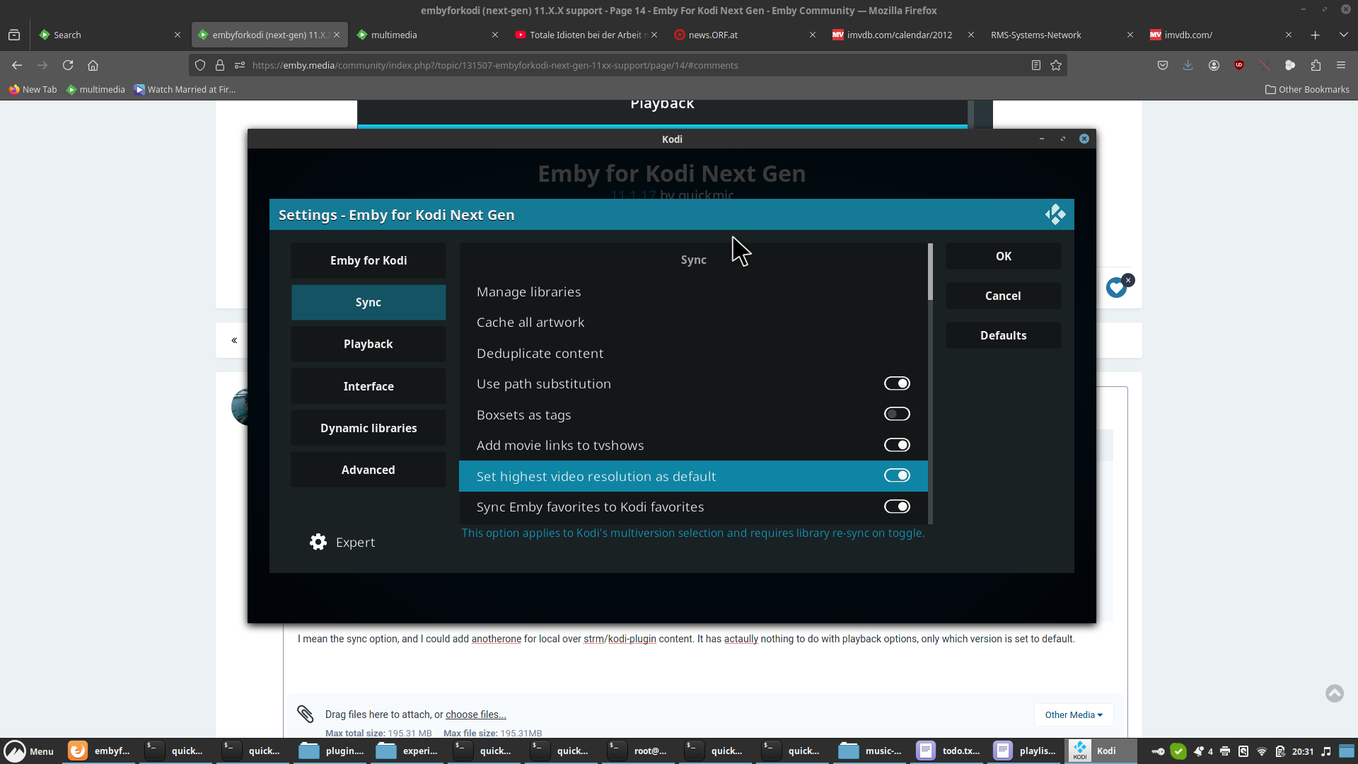 SebUng 4 Posted January 1, 2025 Posted January 1, 2025 11 minutes ago, quickmic said: I mean the sync option. I could add another one for local over strm/kodi-plugin content. It has actually nothing to do with Kodi's playback options, only which version is synced as Kodi default. You will have still 2 versions. But if you wish, you could configure Kodi to play default without asking... btw, only works for movie content, cause Kodi devs decided in their wisdom to support multiversions only for movies (natively). Episodes, musicvideos is still using plugin's workaround due to the limitation. What I will not do, is removing one version completely (based on pattern). I could add another one for local over strm/kodi-plugin content. This would be awesome if it is possible 1