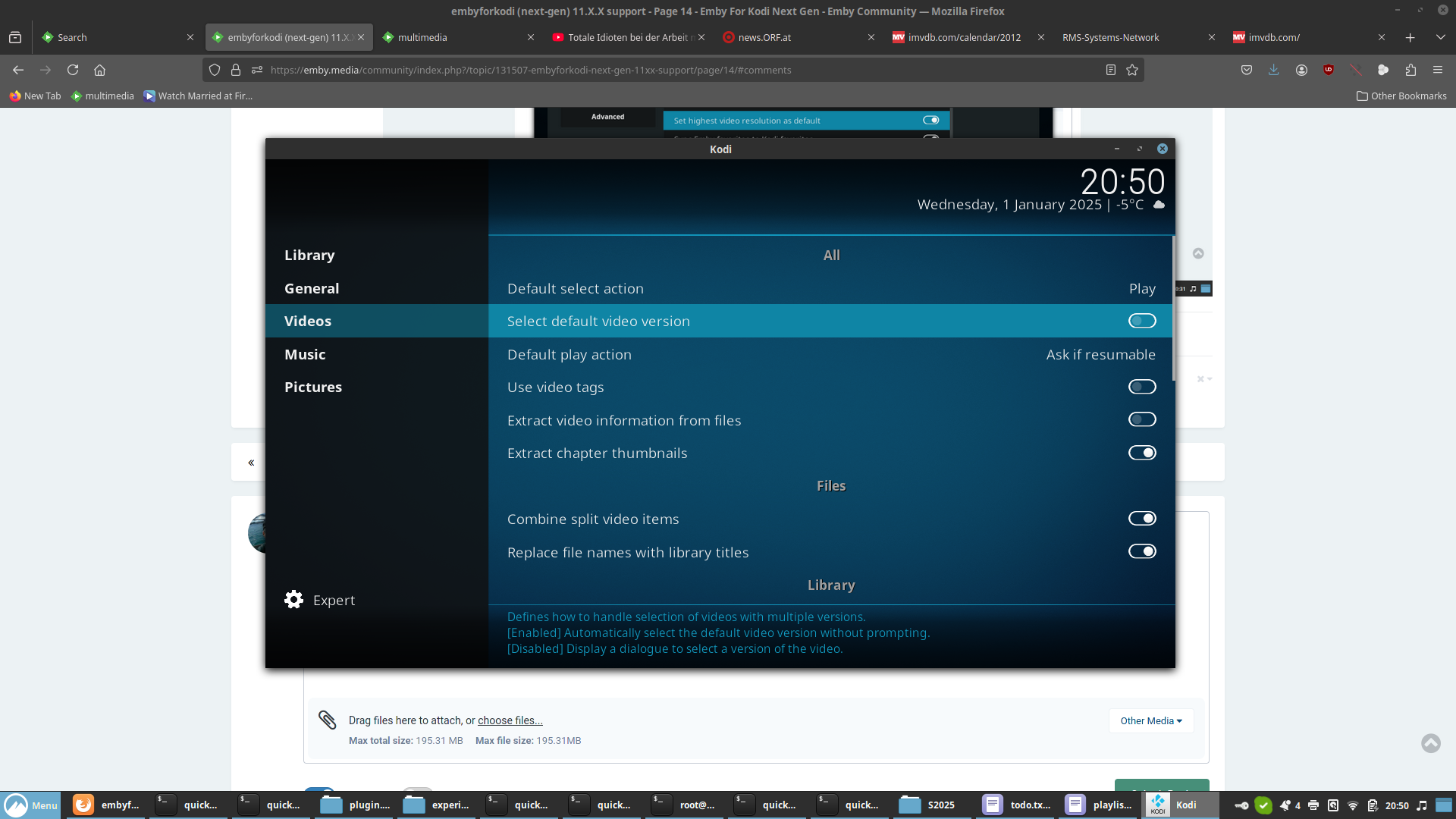 quickmic 1703 Posted January 1, 2025 Author Posted January 1, 2025 What I could offer additionally: For episodes etc, which uses the workaround, I could also play the default version without asking. I would use Kodi settings for that (play default version) ->