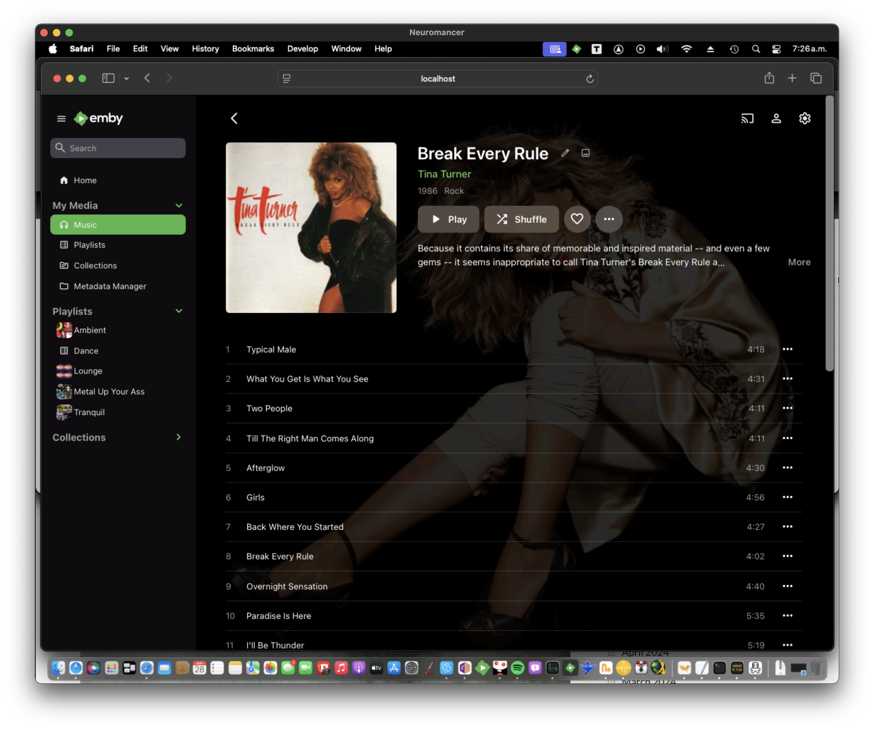 jmariani 24 Posted August 26, 2024 Author Posted August 26, 2024 2 hours ago, jmariani said: Hi. Last night did a library scan, just in case. This morning added "Break every rule" by Tina Turner. Still not showing. embyserver.txt 10.15 MB · 0 downloads Timeline of this post: 1 - Start a library scan sunday around 23Hs. 2 - Monday morning (today) added "Break every rule" by Tina Turner. 3 - The log I uploaded is the log after the library scan and the addition of "Break every rule". Also is the screenshot. Please find in the log the Tina Turner album, not the AC/DC one.