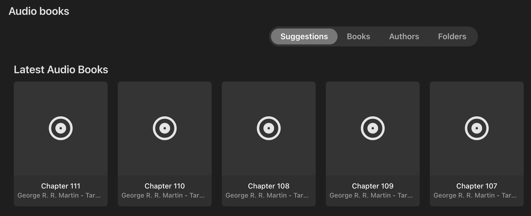 For book2 however it just shows under "folder" and under suggestions. But in suggestions it shows every chapter as an entry.
