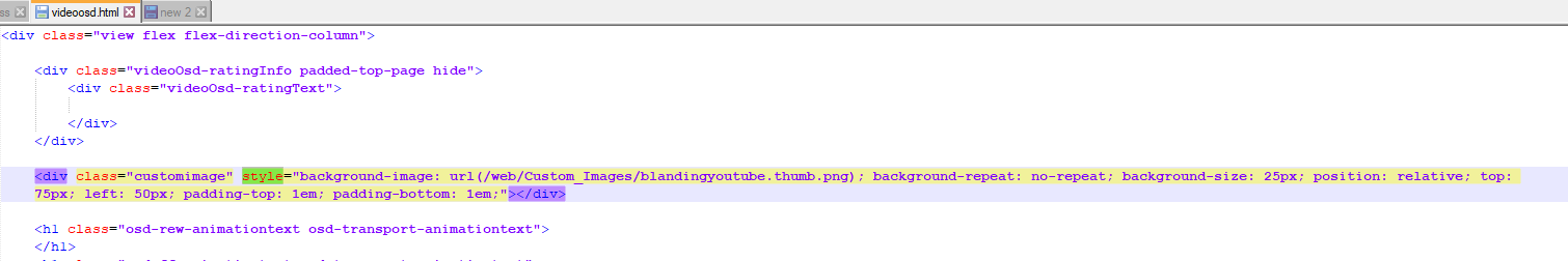 Solution Happy2Play 9780 Posted September 1, 2024 Solution Posted September 1, 2024 quick and dirty as it affect the bottom controls (left) put image in custom folder within dashboard-ui. div.view-videoosd-videoosd { background-image: url(/web/Custom_Images/blandingyoutube.thumb.png); background-repeat: no-repeat; background-size: 25px; top: 75px; left: 50px; } Or inject into videoosd.html won't affect controls.