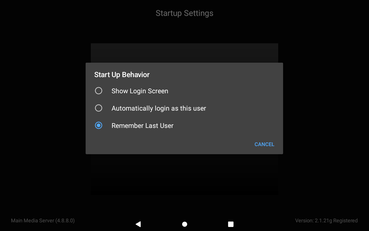 Hi.  In the Android TV app you can select "Show Login Screen" as the startup behavior in settings.