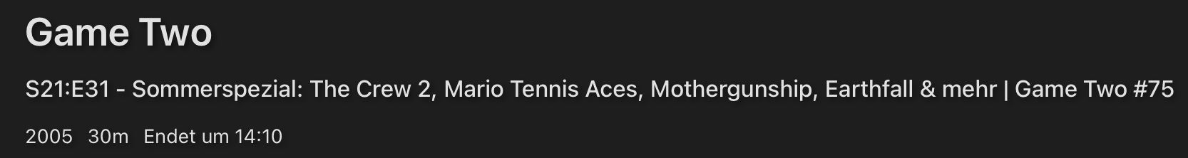 GrimReaper 4739 Posted September 6, 2024 Posted September 6, 2024 (edited) Theres several variations you can try: 1) Game Two (2005) - 2018-06-17 - TtlE3-Roundup 2018 XXL So viele geile Spiele gab's noch nie Game Two 74.mkv 2) Game Two (2005) - 2018-06-10.mkv Game Two (2005) - 2018-06-17 A.mkv Game Two (2005) - 2018-06-17 B.mkv Game Two (2005) - 2018-06-17 C.mkv Game Two (2005) - 2018-06-24.mkv 3) Game Two (2005) - 2018-06-10 A.mkv Game Two (2005) - 2018-06-17 A.mkv Game Two (2005) - 2018-06-17 B.mkv Game Two (2005) - 2018-06-17 C.mkv Game Two (2005) - 2018-06-24 A.mkv 4) Game Two (2005) - 2018-07-21 - IDE31moRg7rD_EM.mkv or whatever string you fancy. Edited September 6, 2024 by GrimReaper