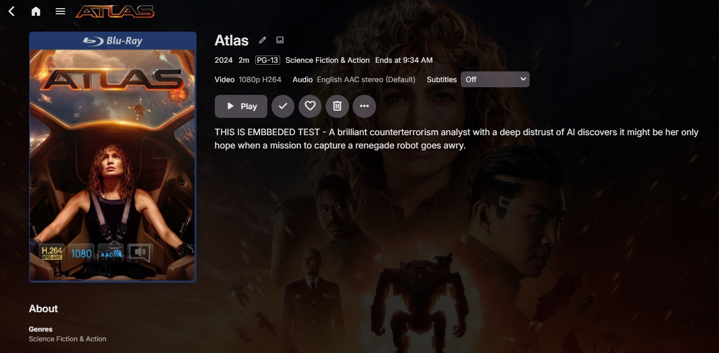Happy2Play 9781 Posted September 5, 2024 Posted September 5, 2024 With disabled providers Emby read the embedded info. As you can see from the overview and the wrong genre format. But yes if providers are enabled online data can replace embedded data as technically there is a lot of missing data as I did not include cast as it is always in the wrong format.