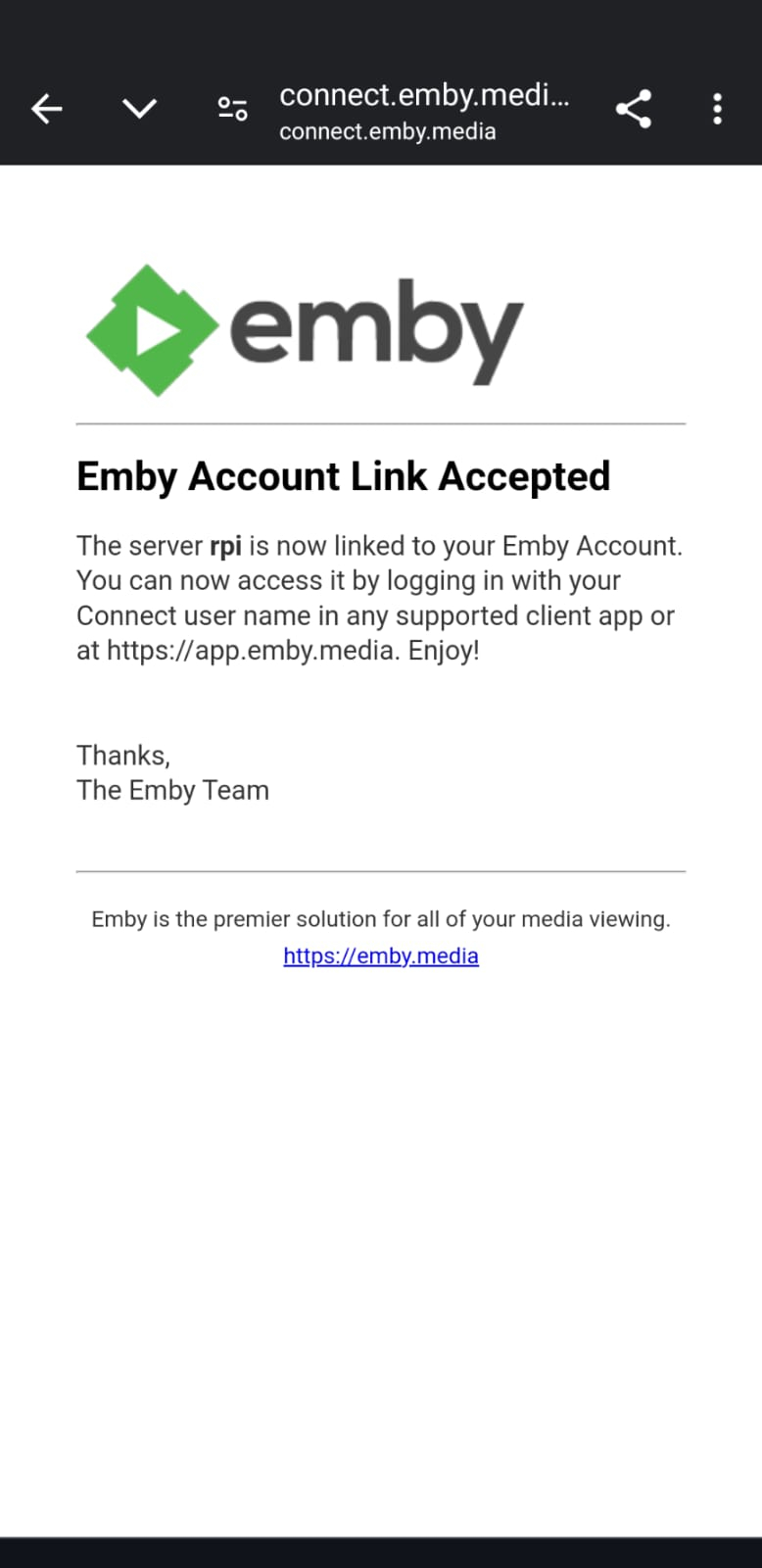 clhdjckbjjzjbvbek 2 Posted September 5, 2024 Posted September 5, 2024 I installed Emby server on raspberry pi os (debian) and on my network its working properly. I added my email to (Optional) Emby Connect email address I also have this configuration checked: Allow remote connections to this Emby Server I turned off the wifi on my phone and tried "Sign in with Emby Connect" Entered the mail and password, and it just returns me to the previous screen (select server) I would mention that I had Emby server previously installed on an Android device, and had no issues at all connecting from outside my network without any additional configuration. how can I resolve this issue?