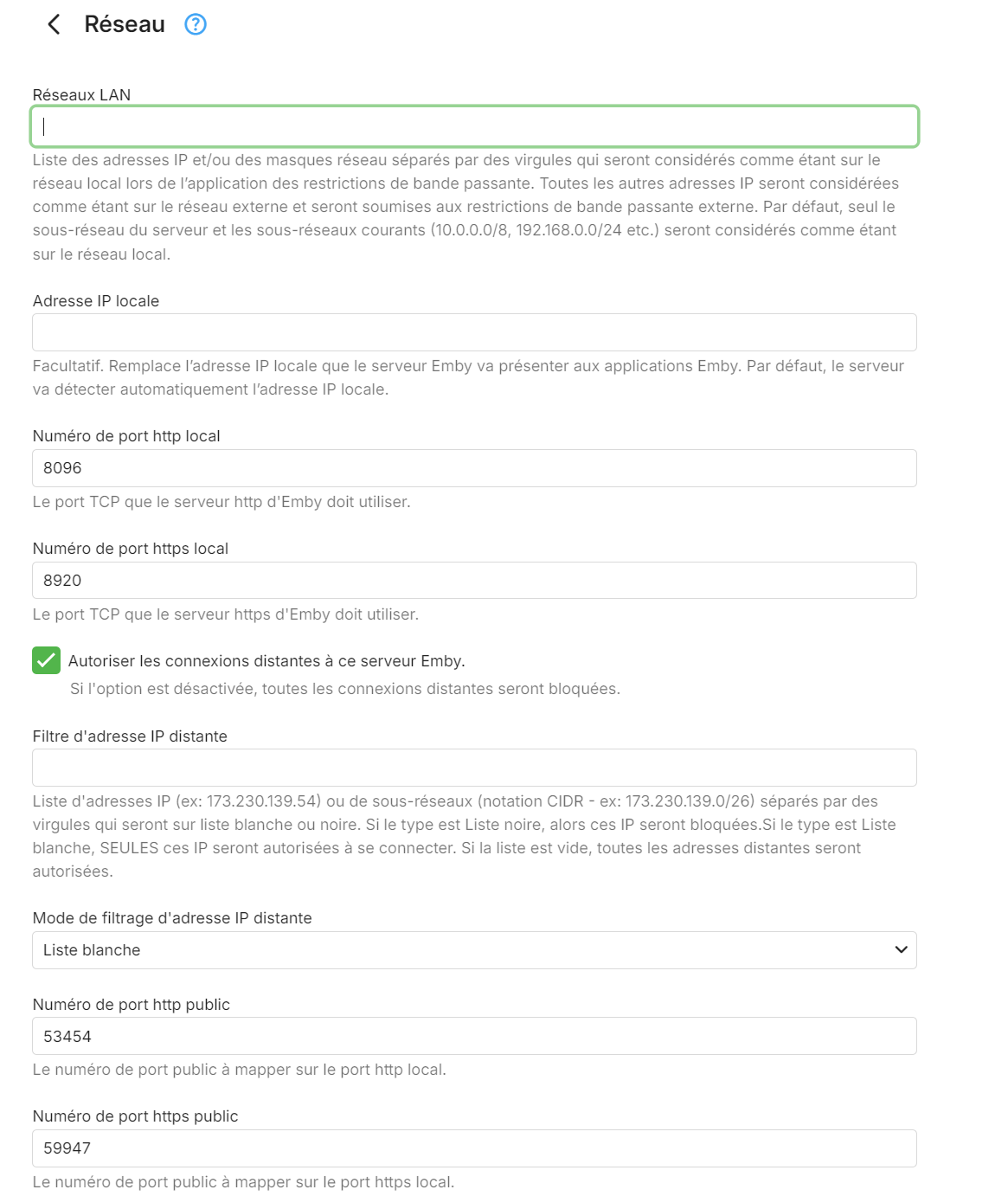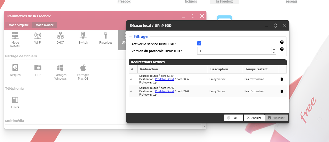 Hubogoss 2 Posted September 16, 2024 Posted September 16, 2024 Bonjour à tous, J'ai un soucis, tout marchait bien en en accès à distance après de grosses difficultés, mais grâce à ce forum, j'avais réussi à tout faire marcher. Mais depuis une mise à jour de la Freebox pop, des paramètres ont dû sauter... plus rien ne marche, et je ne sais plus ce que j'avais fait ! Je partage mon emby avec mes fils à distance... Papa tout fier d'avoir réussi ! mais là... Sauvez moi ! Si quelqu'un a une idée de ce qu'il manque ? Merci par avance ! Voilà mes paramètres :
