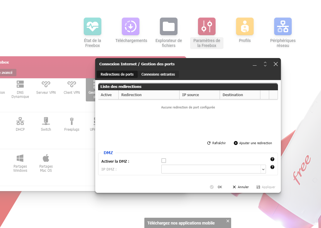 MAX92 91 Posted September 17, 2024 Posted September 17, 2024 C'est pour avoir une adresse IP fixe. Je pense que c'est à cause de cela que ça ne fonctionne plus. Tu as peut-être changer d'adresse et donc tes connexions externes ne fonctionnent plus. Tiens nous au courant 1