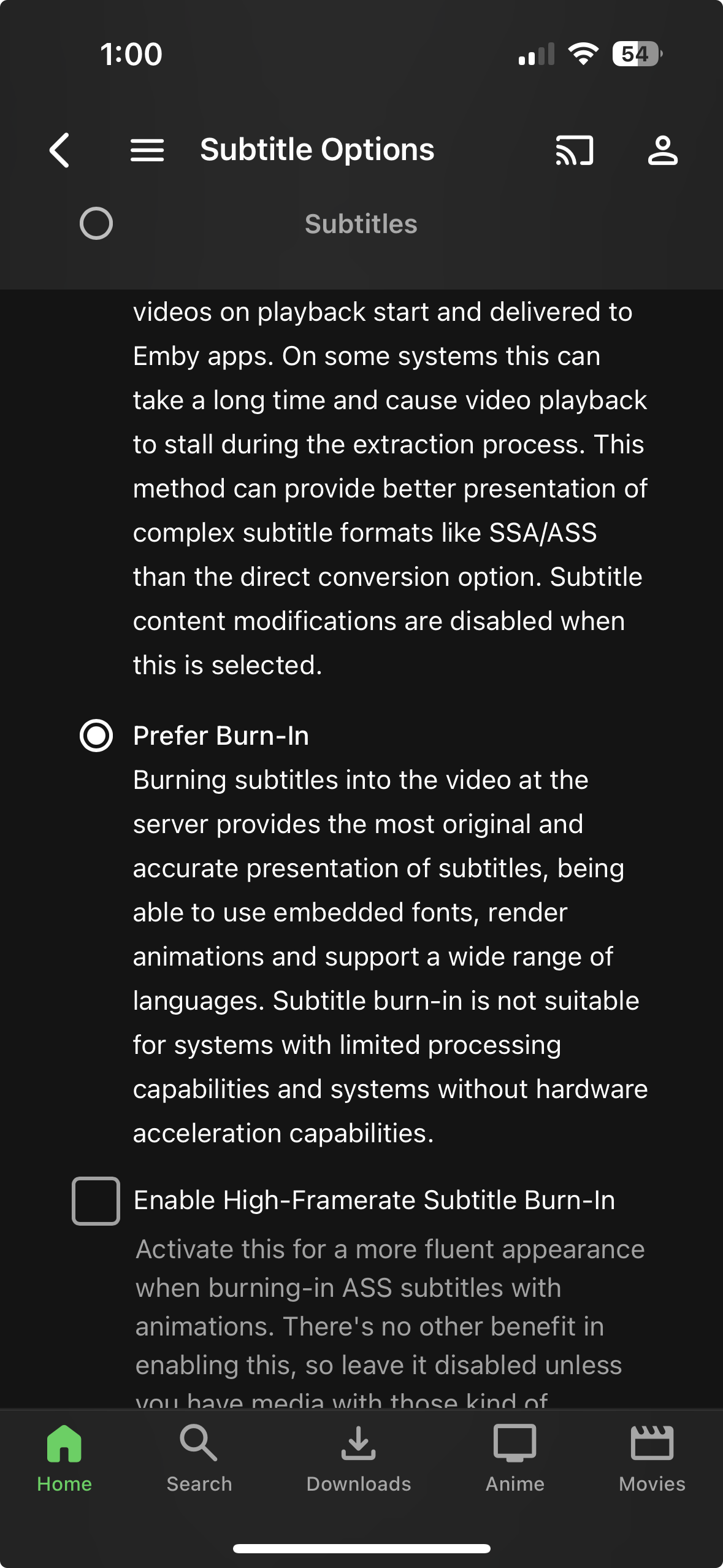 guunter 49 Posted September 22, 2024 Posted September 22, 2024 1 hour ago, Hypopheralcus said: Removing the Limit is an option AFTER I resolved the problem - because of course I want emby to correctly transcode when necessary. It seems though, that the issue of the buffering might be connected to some known problems with subtitles. So I now for a test deactivated all subtitles and am yet again waiting for the resonance from the remote users. I find setting the subtitles to burn in is the best option. You need to have diagnostic plugin installed to see the subtitle options in advanced.