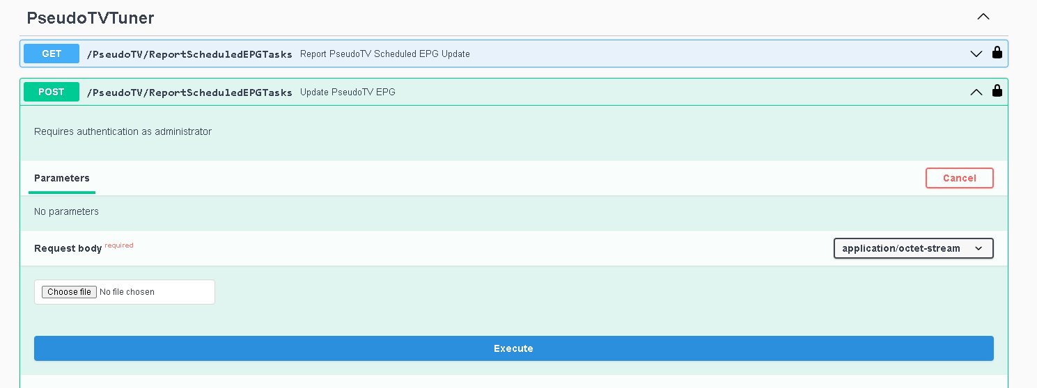 mickle026 650 Posted September 30, 2024 Posted September 30, 2024 2 minutes ago, VicMoore said: @mickle026I added your edited code and [Route("/PseudoTV/ReportScheduledEPGTasks", "POST", Summary = "Update PseudoTV EPG")] [Authenticated(Roles = "Admin")] public class EPG_Update : IReturnVoid, IRequiresRequestStream { public Stream RequestStream { get; set; } } public void Post(EPG_Update request) { StreamReader reader = new StreamReader(request.RequestStream); string ReceivedJsonText = reader.ReadToEnd(); this.Logger.Info("======PseudoTv POST Data = " + ReceivedJsonText); } When I POST to the server I get a server error. Did you experience this? Vic No, but i didnt try from the js, I'll try now this is what I get This is response from the GET request I need to sleep now, ill look further later .. and maybe build a spereate test plugin