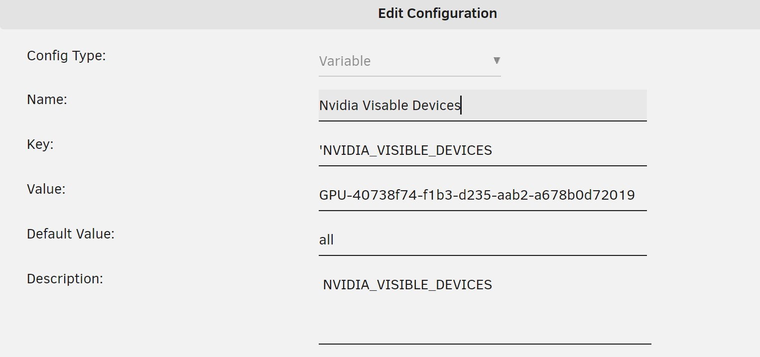 NVIDIA_VISIBLE_DEVICES = (your GPU. should be same as plex)