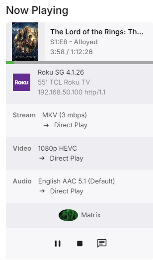 Solution bardmaster 17 Posted September 30, 2024 Author Solution Posted September 30, 2024 18 hours ago, speechles said: During playback if you use the "Attempt Playback Correction" button found under the cog/gear it should allow you to change streams. It will remux and copy all the streams, but change the container from MKV. The problem you have is the Roku does not like how that MKV was packaged. It has things in the streams that it cannot understand like those chapters at the end which cause it to make selection of audio streams and subtitles difficult during direct play. If using playback correction solves the problem you can probably fix this by using MKVToolNix Gui and copying all the streams into a new MKV container Also, keep in mind that ASS/SSA subs on Roku are "technically" not supported. They will be stripped of all markup and reduced down to just text and fed to the SRT renderer. Sometimes this stripping removes everything and breaks the subtitle from showing at all. The best way to display ASS/SSA subs on Roku is by burning them in. You can also download an external SRT for this file and solve the problem immediately. External SRT are not part of the problem MKV container and will always work. Thanks for the quick response @speechles During playback if you use the "Attempt Playback Correction" button found under the cog/gear it should allow you to change streams: tried that, works sometimes but not consistently for me. In fact, since the last server update this doesn't seem to work at all. If using playback correction solves the problem you can probably fix this by using MKVToolNix Gui and copying all the streams into a new MKV container: curious idea, tried it just for kicks and made no difference. The best way to display ASS/SSA subs on Roku is by burning them in: Yes this works fine if I burn in the Forced (foreign) subs using Handbrake; essentially this text ends up being hidden behind the full sub when I manually switch to it (if the full sub also has foreign parts; if not then the burned-in text still shows). The "Burn in SSA Subtitles" in Emby-for-Roku settings causes horrible playback stuttering so I don't use it. You can also download an external SRT for this file and solve the problem immediately: yes, I had done that and confirmed it works great, but I have not gotten the auto-download from Open Subtitles to work consistently and doing this manually adds a lot more time and effort. My final approach: Burn in the foreign subs during encoding, and keep the full embedded SSA/ASS subs for manual use when needed. This will at least be my approach until somebody volunteers to write Handbrake code that would add subtitle encoding options besides SSA/ASS. Thank you! Brad