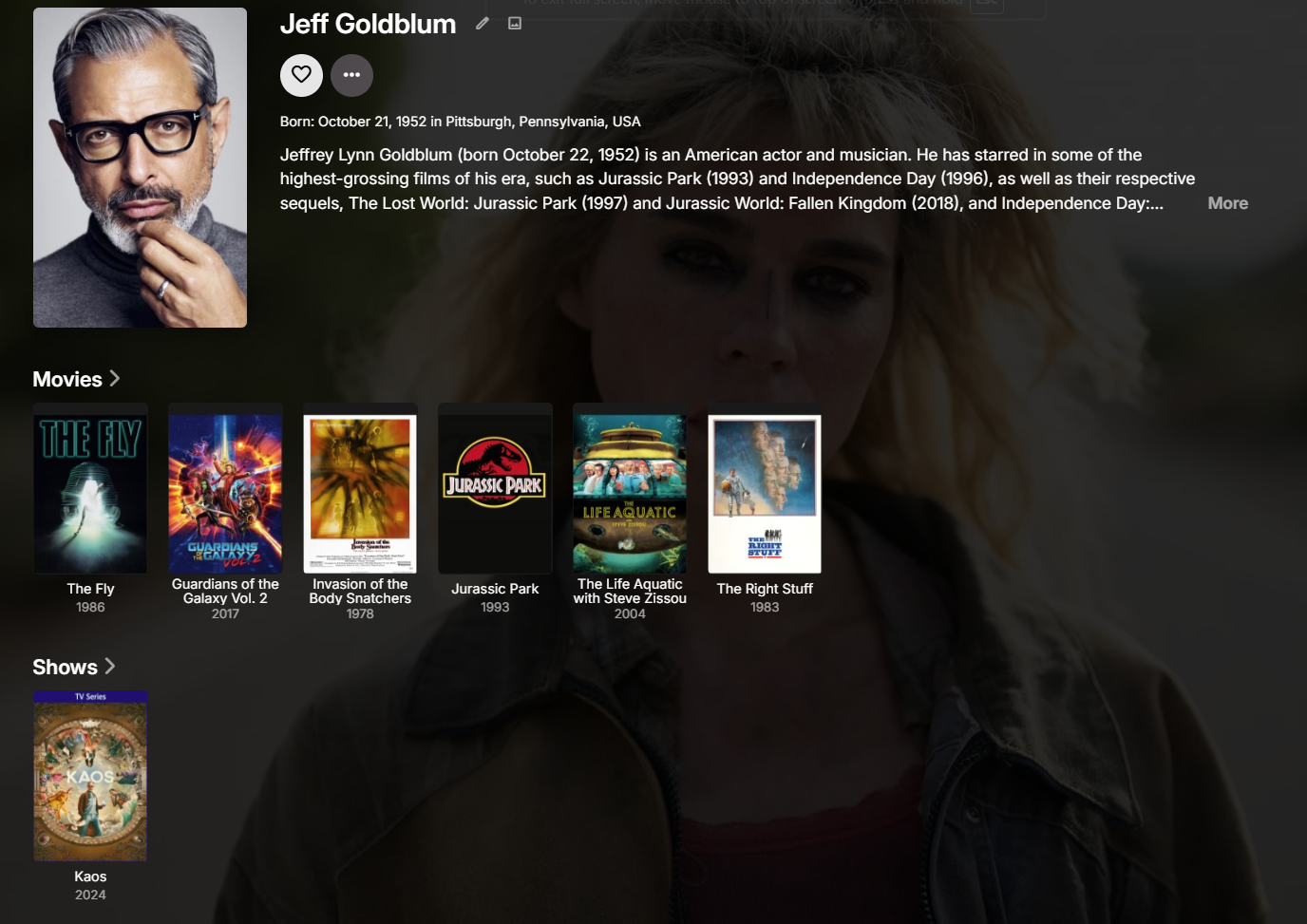 RRo100 10 Posted October 15, 2024 Author Posted October 15, 2024 Hello, here's another example. The series KAOS was made available for EMBY 3 days ago. Jeff Goldblum and Billie Piper are actors in the series. The series is available for Jeff, but not for Billie. What could be the reason for this?