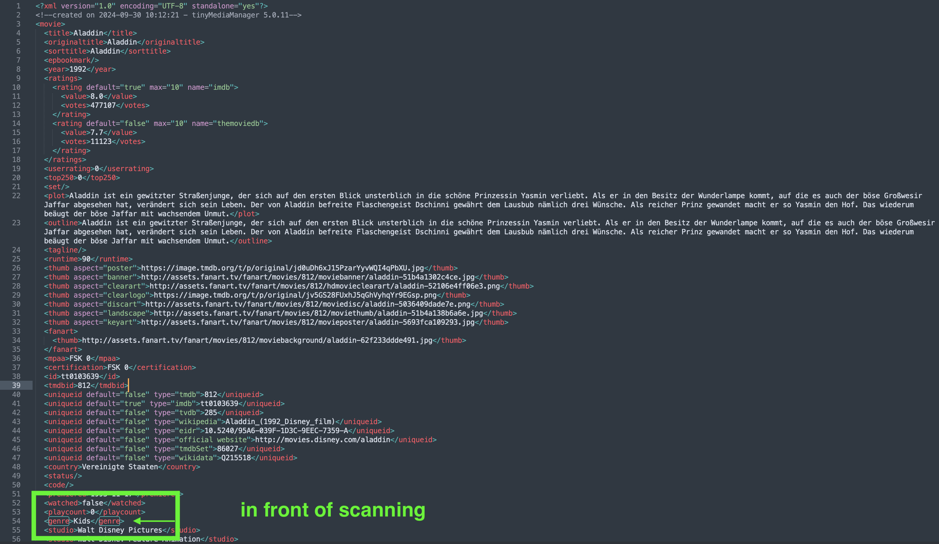 Workstation 4 Posted October 5, 2024 Posted October 5, 2024 (edited) Hello everyone, I have the problem that after updating the library my NFO is changed. I have set my data so that I only have 1 genre per movie, but when I update the library, this is overwritten. Is this a bug or have I set it wrong? Also, I noticed that all my movies have a “Season.nfo” even though the movies were all recognized correctly. Edited October 5, 2024 by Workstation
