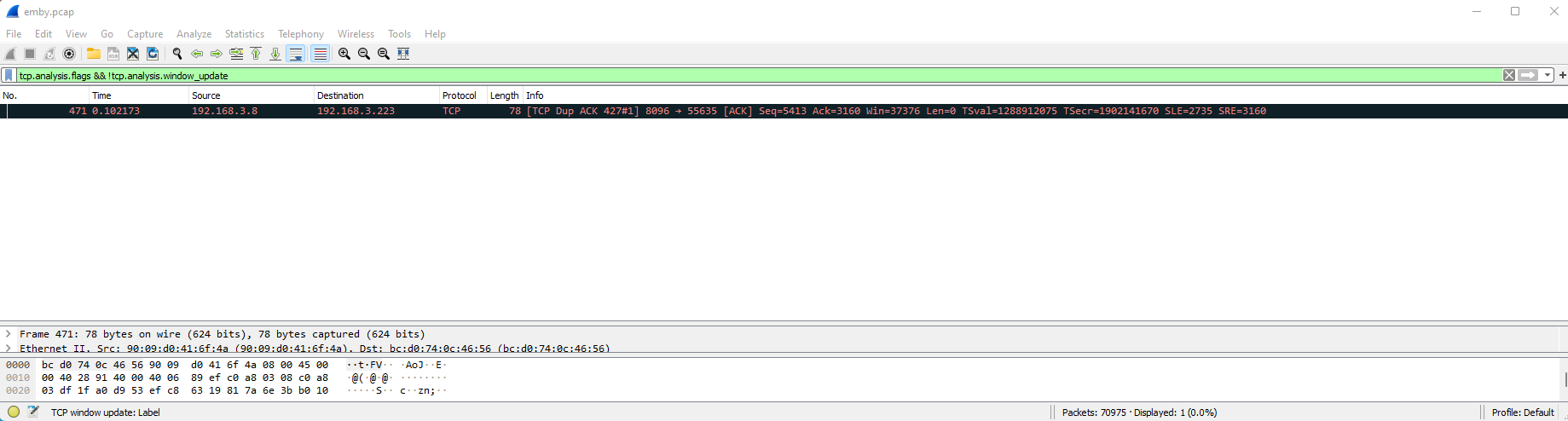 SherlockLin 2 Posted November 18, 2024 Author Posted November 18, 2024 (edited) 1 hour ago, rbjtech said: It should be very evident in a simple wireshark data capture on the number of TCP Retransmission packets. I don't believe you are going to see anything in the logs - this is all happening at a packet level under the guise of tcp/ip - which is 'handling' the error, but at the expense of bandwidth (retransimisions). My initial thoughts are a latency timeout issue or buffer mismatch on the client - but without a packet capture - it's impossible to say. If you have a pcap to share, then I'm happy to take a quick look. Here’s the pcap from the Emby Mac client on a local network. Playback stops after a few seconds because if it runs too long, the capture file will become too large. emby.pcap.zip Edited November 18, 2024 by SherlockLin