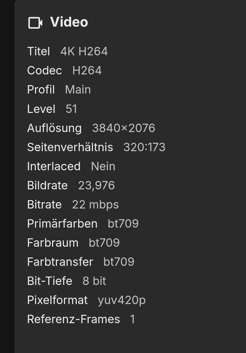 Marcidarci 6 Posted October 8, 2024 Posted October 8, 2024 (edited) Hallo ich habe das Problem wenn ich extern also außerhalb meines Lan zuhause, Handy Videos abspielen möchte also Videos die vom Handy aufgenommen worden sind, diese Videos nur mit nachladen abgespielt werden können. Das heißt ich möchte ein Video abspielen er fängt an zu laden das Video läuft ein paar Sekunden dann muss er wieder nachladen. Es handelt sich hierbei um 4K HEVC Videos die Original Bitraten liegen so bei 60 mbps was natürlich bei meinem 50mbit Upload vom Provider zu viel ist für direct play. Doch auch wenn ich die Videos auf knapp 18 mbps komprimiere was eigentlich locker ausreichen sollte für direct play, spielt er die Videos trotz allem nicht ohne nachladen ab. Ich verstehe das nicht. Andere normale Spielfilme in 4k laufen ohne Probleme auch außerhalb meines Heimnetzwerks. ffmpeg-transcode-c6d23ae7-9f2e-4345-b52d-5cdd893c076c_1.txt embyserver.txt Edited October 8, 2024 by Marcidarci