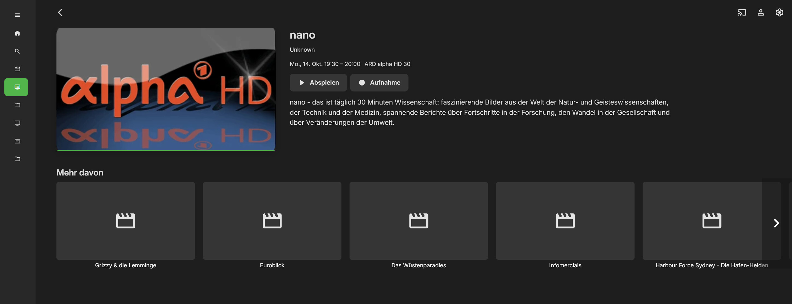 Micro70 1 Posted October 15, 2024 Author Posted October 15, 2024 At the moment I'm using the VU as a source, but I only get the pure EPG as text. I use the (advanced-event-libary) plugin on the VU. This provides the appropriate pictograms on the box. It was a mistake on my part when I thought the information would also be transferred to the Emby sever. Unfortunately I have no idea which xmltv I can use.