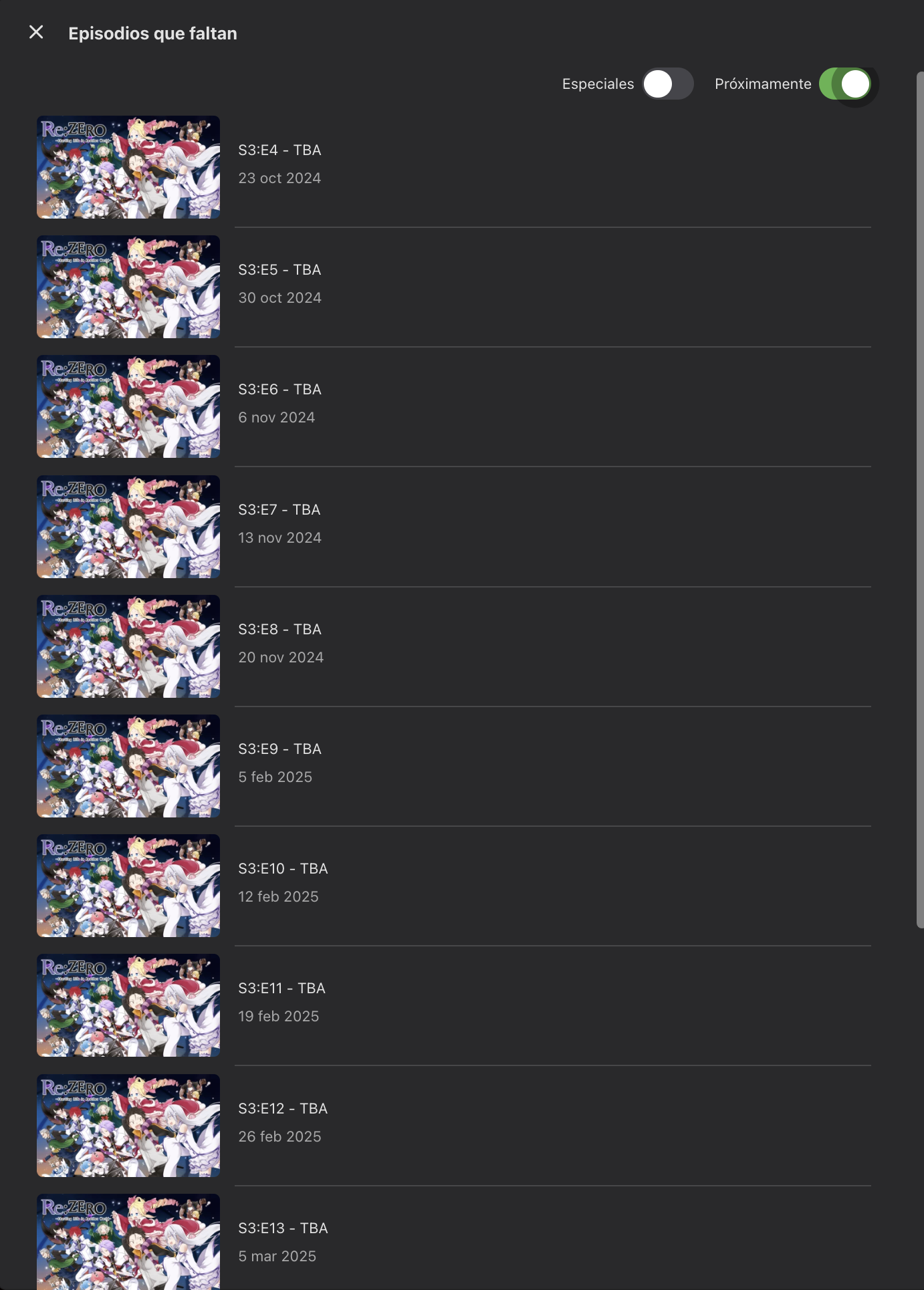 The issue comes here, If I go to the library containing this show and I check for upcoming episodes: