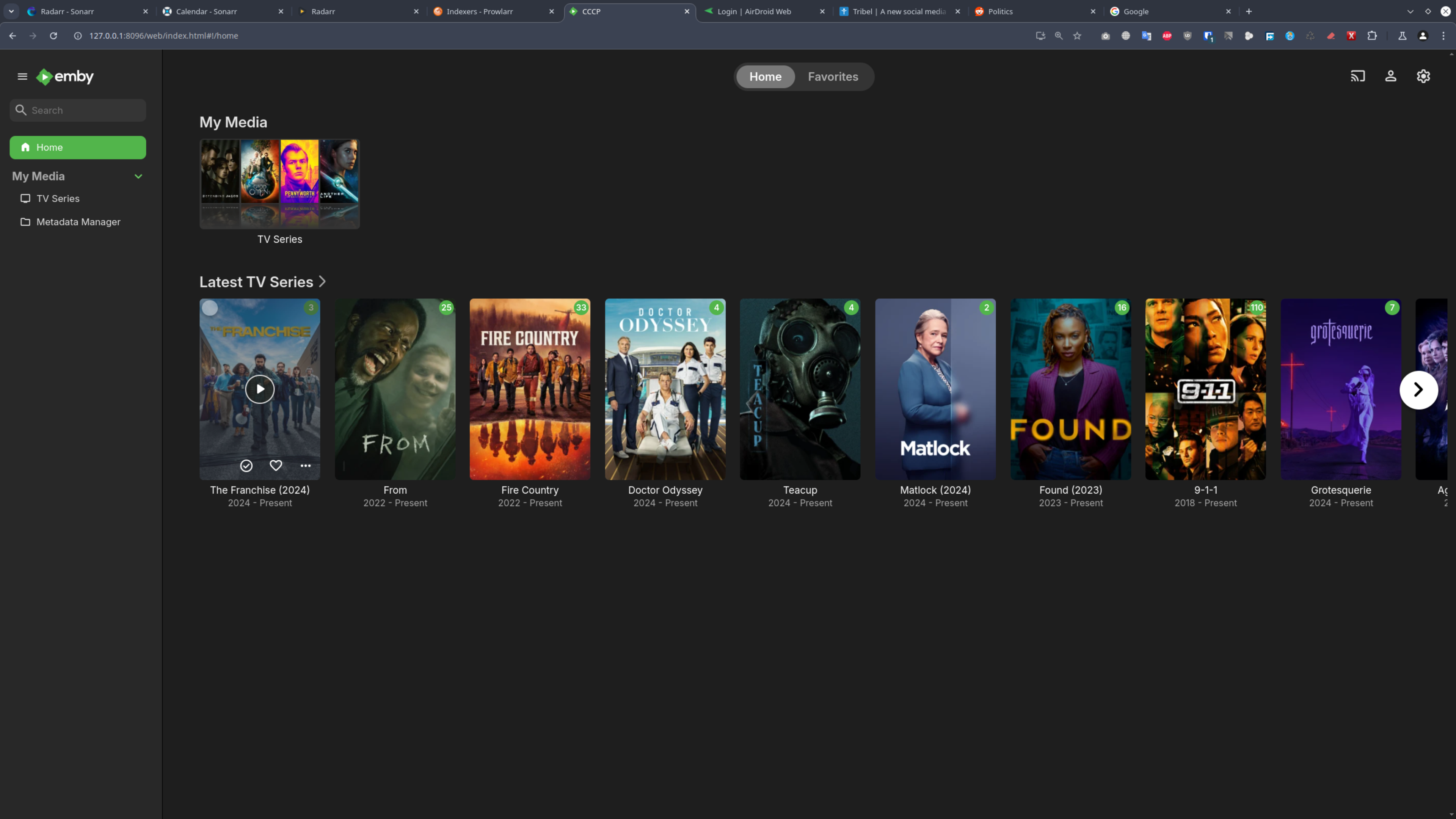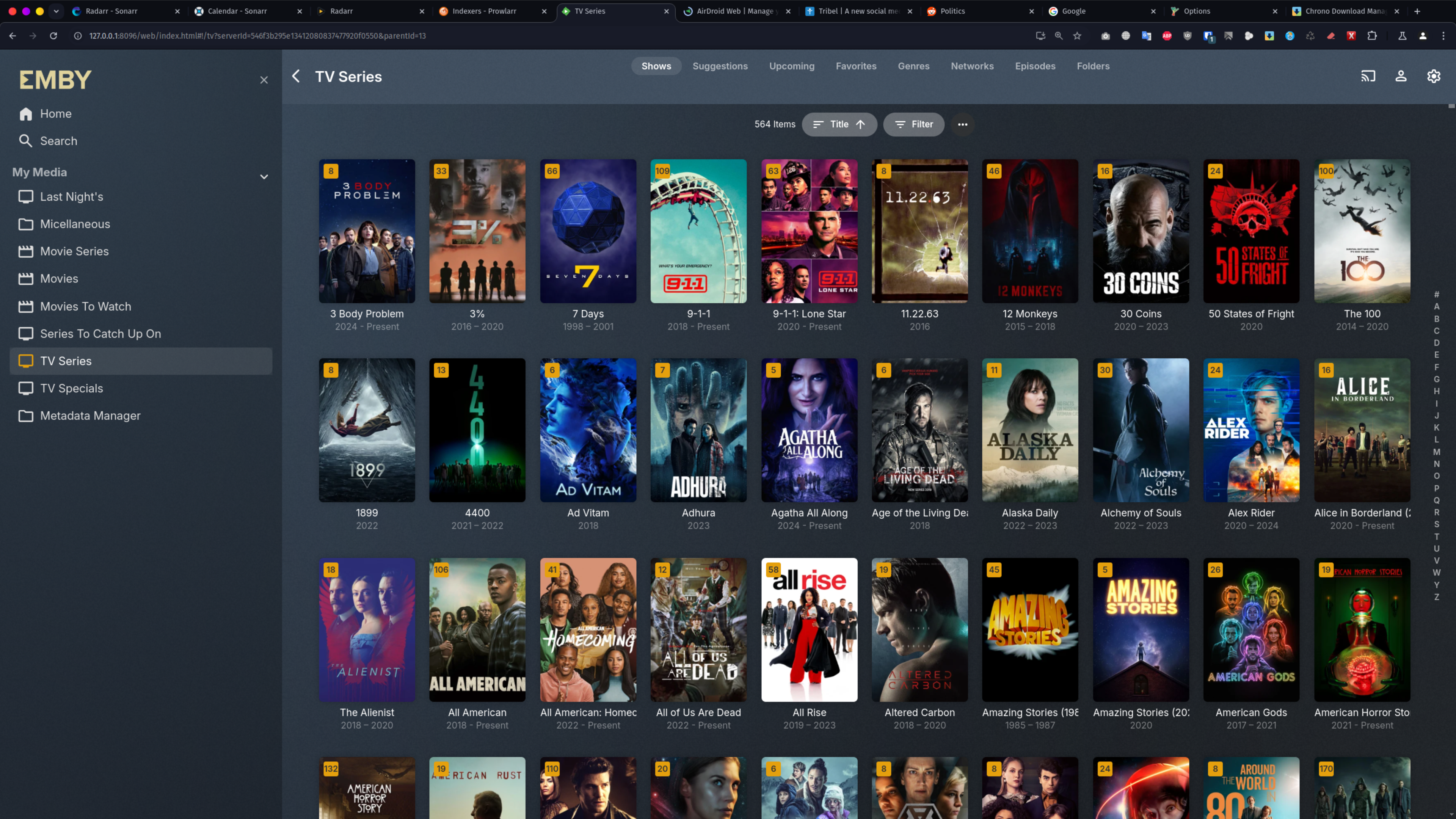 OK I just booted into pure Arch and launched Emby where I only have TV Series added right now and all is as it should be, so It's something specific with my Emby install in Garuda.