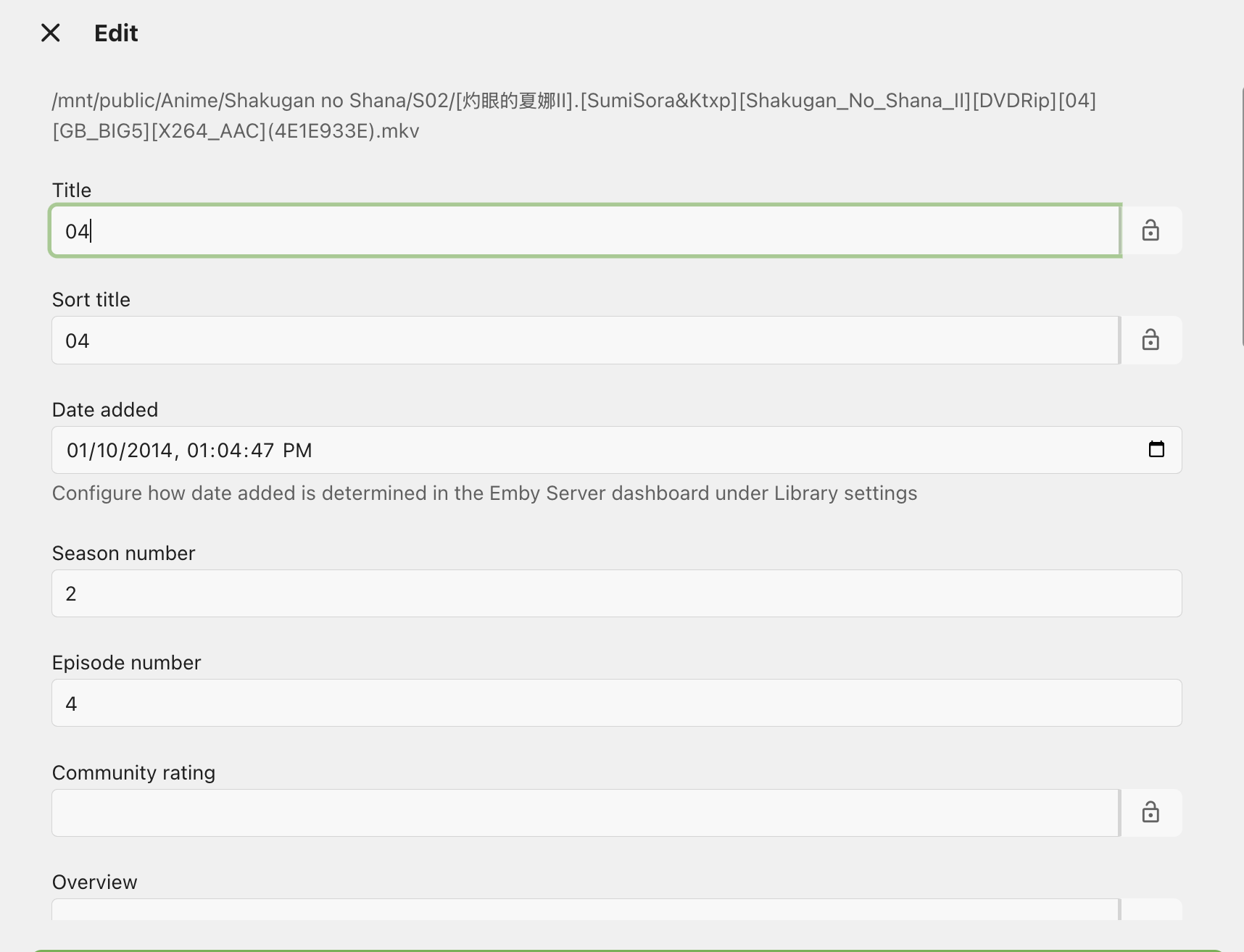 There is a media file of a season of a TV series. If I place it (4th file in screenshot), not like its neighbors, displayed with a strange index. Checking the nfo file of this file created by EMBY, they are many episodedetails nodes as multiple roots. I tried to delete the media from EMBY, copy the media file back without NFO file. After rescanning the library, the problem still and the NFO is created as the same.