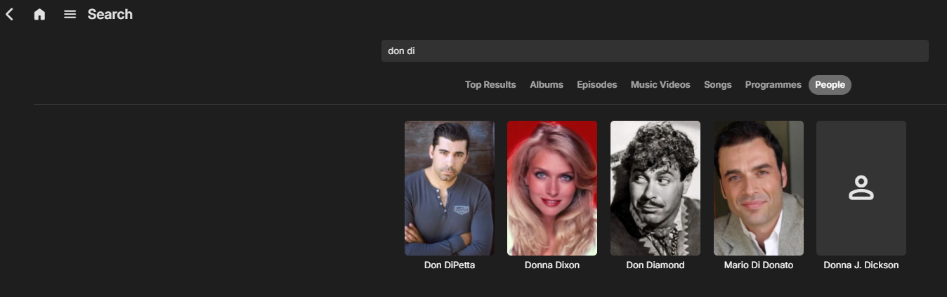 visproduction 315 Posted November 2, 2024 Posted November 2, 2024 (edited) Nem, Your example is from a TV show library. I tried that and tried Movie library on Version 4.9.0.30 beta, I find no new headshots in either method. Hmmmm... Is your dbase search different? I tried just 'Don' inside Movie library and clicked on the People tab. From there I got no change after a group refresh. Is it maybe Beta or my dbase downloader settings? Edited November 2, 2024 by visproduction