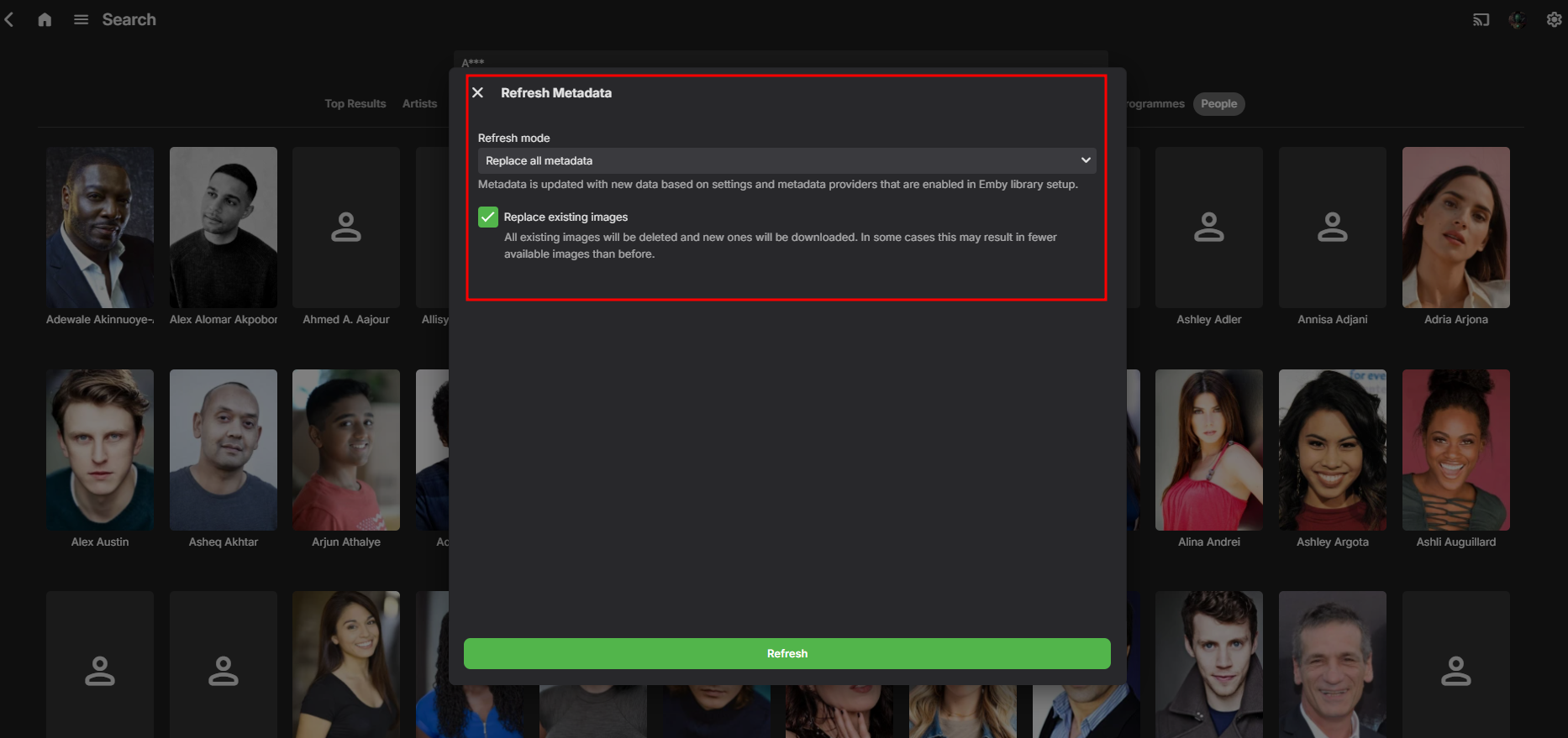 Happy2Play 9780 Posted November 2, 2024 Posted November 2, 2024 37 minutes ago, visproduction said: Does this trick work for anyone? No it only works for People that have images on TMBDB/TVDB. But are initially gotten during media import per first metadata provider. But not everyone will have a image. Just like some don't have images on any provider. example Tom MacRae - IMDb Tom MacRae — The Movie Database (TMDB) Tom MacRae - TheTVDB.com Or you can poke around the database with actors (type 23) with non image urls and script process each dbid to be refreshed. C:\Windows\System32\curl -X POST "http://localhost:8096/emby/Items/{PERSONID}/Refresh?Recursive=true&ImageRefreshMode=FullRefresh&MetadataRefreshMode=FullRefresh&ReplaceAllImages=true&ReplaceAllMetadata=true&api_key={APIKEY}" -d ""