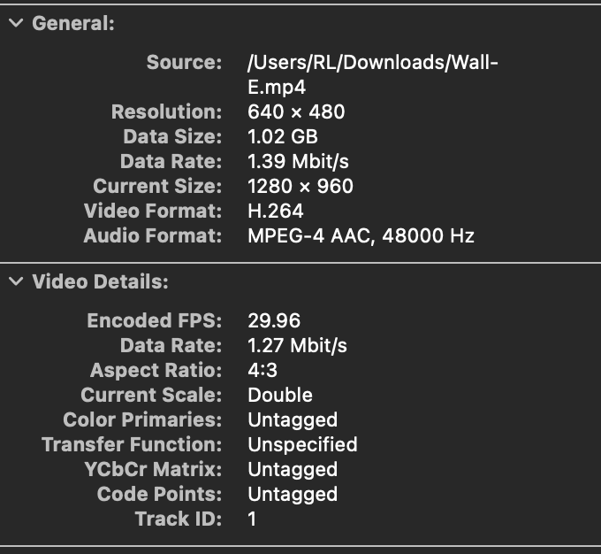 I tried downloading the video to my laptop & played it with the Quicktime.  The window that came up looks like a 4:3 ratio.  The image appears as WS within that (space on top & bottom, but NO black bars on sides (screenshot)). The file size in a little less that 1GB, so it is low res (maybe that factors into Emby's decision how to display?)  Or, perhaps, because Quicktime perceived it as 4:3, that is what Emby reacted to as well?