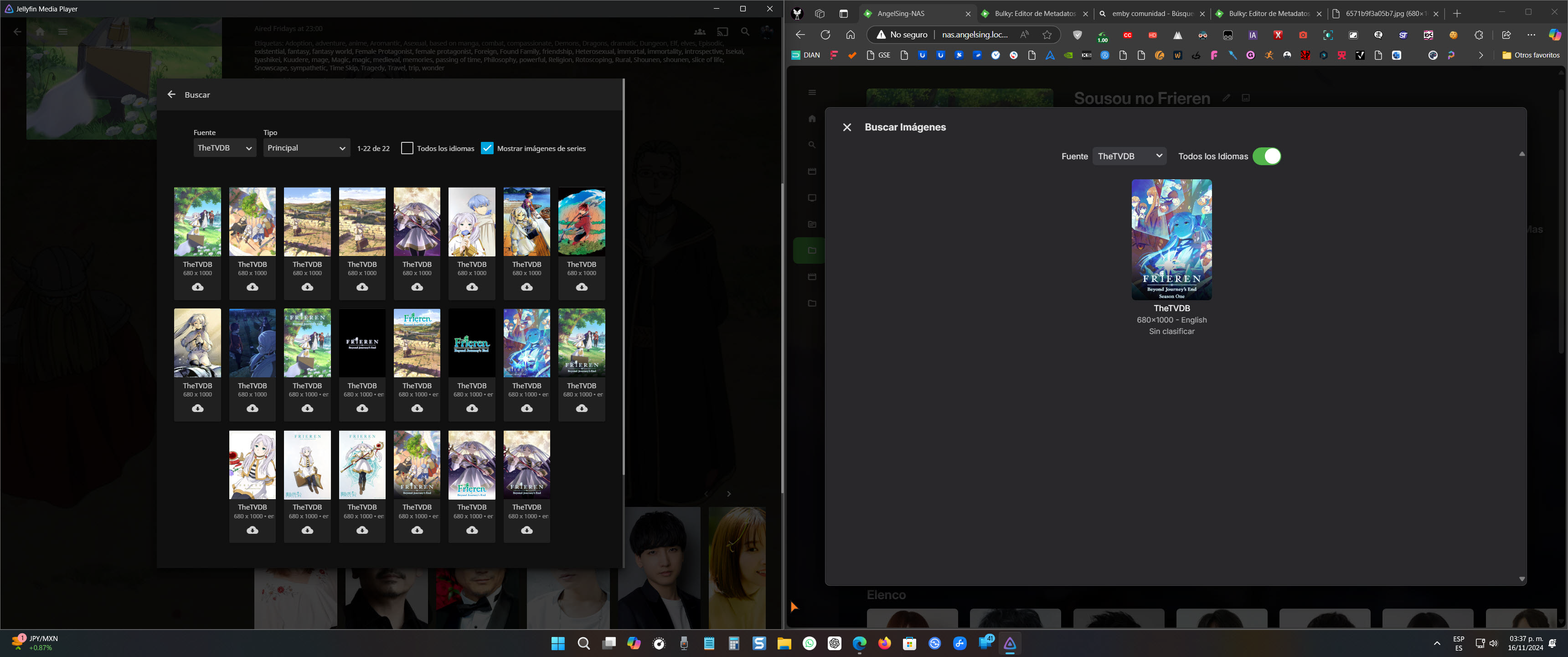 AngelSing 49 Posted November 17, 2024 Author Posted November 17, 2024 5 minutes ago, Luke said: Hi, what exactly are you editing the image for there? Is that the series or season? Jellyfin has an option called "Show series images," which displays all the images available on the metadata page. This functionality is not available in Emby, and the difference in the number of images available between the two platforms is clearly noticeable.