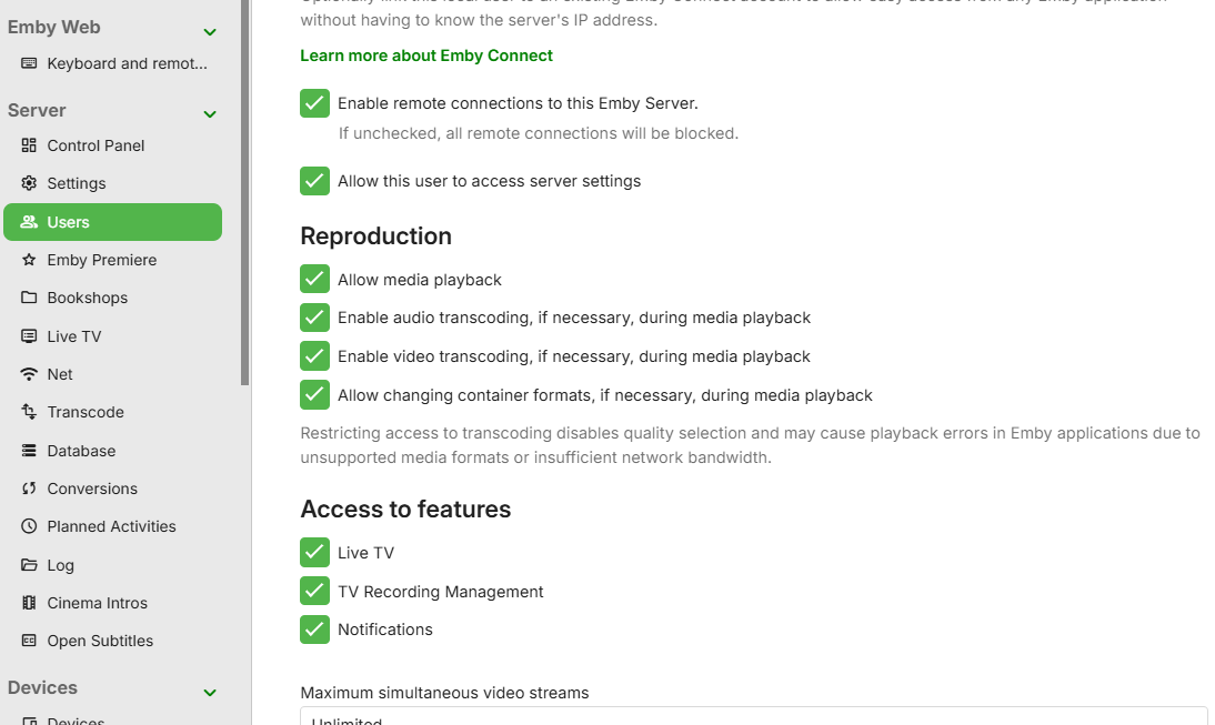 Jollex 2 Posted November 25, 2024 Author Posted November 25, 2024 (edited) Grazie per la segnalazione del link "Matrice delle funzionalità di Emby Premiere" . Purtroppo, continuo a non capire! Sicuramente per la mia incapacità.... Spero! Utilizzo Emby Premiere e pertanto ho installato la relativa chiave nella configurazione. Ma il problema rimane poiché non riusciamo, né io né gli utenti da me abilitati, in nessun modo a scaricare i file multimediali su nessun dispositivo. Ti sono molto grato e spero che vorrai spendere qualche parola in più. Edited November 25, 2024 by Jollex